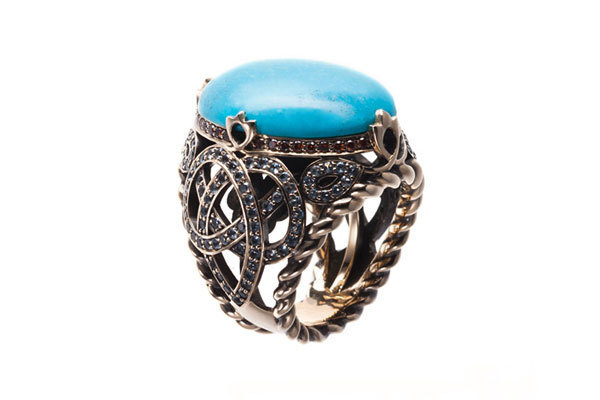 В пору бурной молодости я хотел поступать на журфак, но не был готов к экзаменам. Нужны были знания, а после художественного училища, когда слушаешь Depeche Mode, носишь Dr. Martens и что-то там малюешь, подготовиться было сложно. Так я попал в Богословский институт, где изучил древние языки и получил фундаментальное образование. Сразу после окончания вуза я пошел на вечеринку, познакомился с девушкой из русского Vogue и через три недели работал у них в редакции. Я рисовал детей олигархов и делал фэшн-проекты. Конечно, у людей не укладывается в голове, что у меня может быть такая база. Есть художники, рисующие в стол, они получают удовлетворение от процесса. Я же получаю удовлетворение, когда люди носят мои украшения. Мода — это не мое. Это довольно сложная профессия, не особо творческая: надо быть в рамках сезона, придерживаться тенденций. А ювелирное искусство — это классика, к тому же рукотворная. Когда хоронишь бренды, как в моем арт-проекте Deadbrand, делаешь что-то актуальное, все хвалят, но это не продается: ну кто себе гроб на стену повесит. Я отошел от современного искусства и год назад заявил о себе как о ювелире. Перед этим два года упражнялся, ходил на курсы, делал украшения для мамы, сестры, себя, изучал процесс. Когда несколько изделий получились и начали звонить люди, я почувствовал, что дело выгорит и им стоит заняться. Бренд назван моей фамилией, так как я являюсь главным дизайнером и учредителем компании. Русские всегда так поступают.