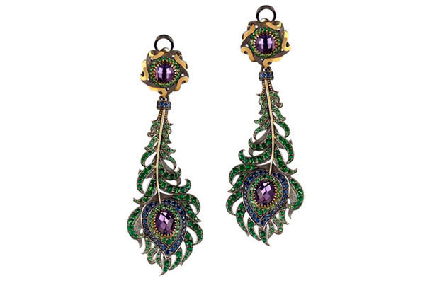 Серьги «Жар-птица», золото, аметист, цветные сапфиры, цавориты