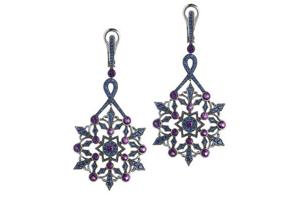 Серьги «Снежинки», серебро, сапфиры, аметист