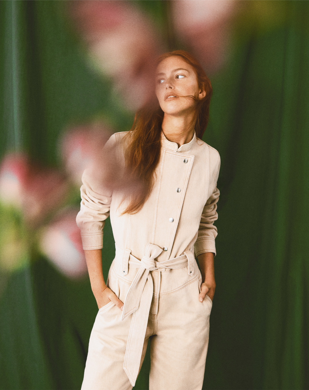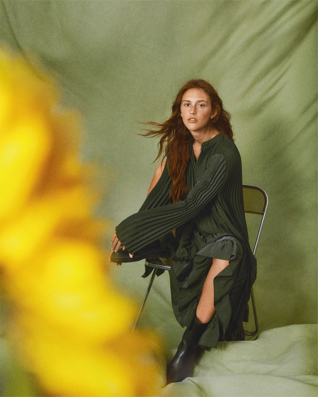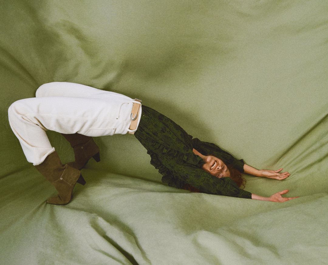 Кроме того, Claudie Pierlot посвятили фотосессию природе и зеленому цвету. Над ней работал испанский творческий дуэт Andoni & Arantxa. Итогом стали натюрморты и портреты модели Лены Баллайр.