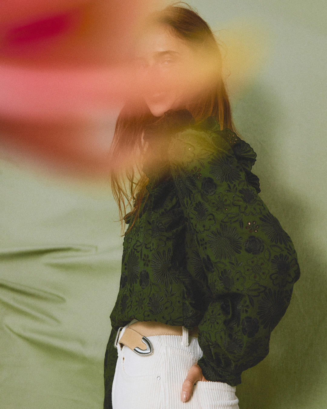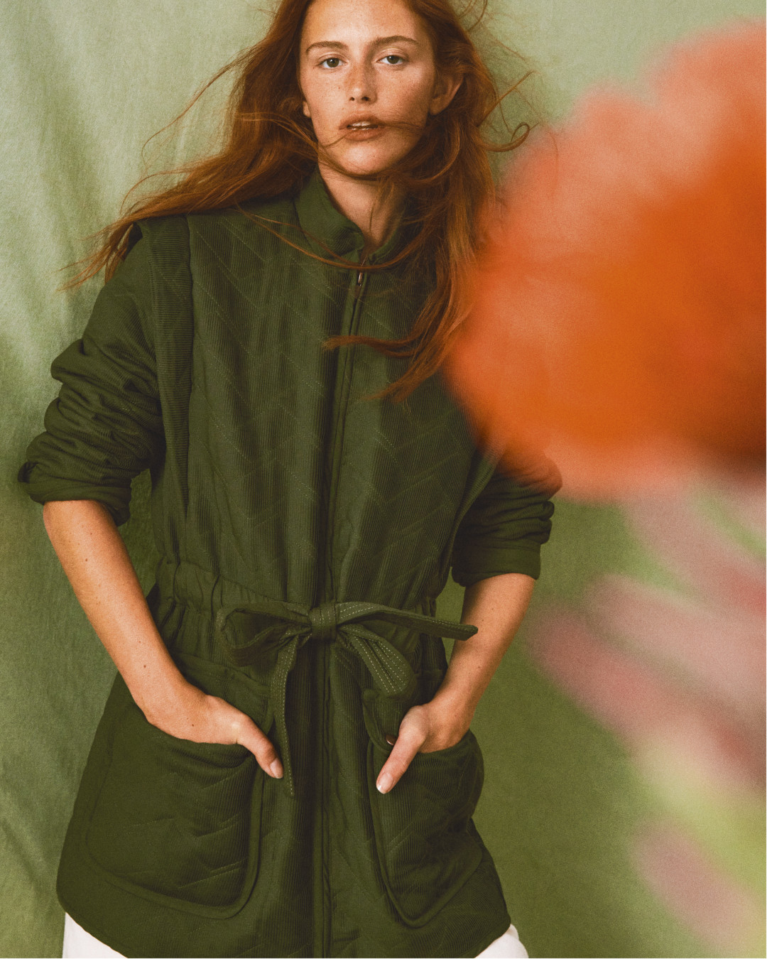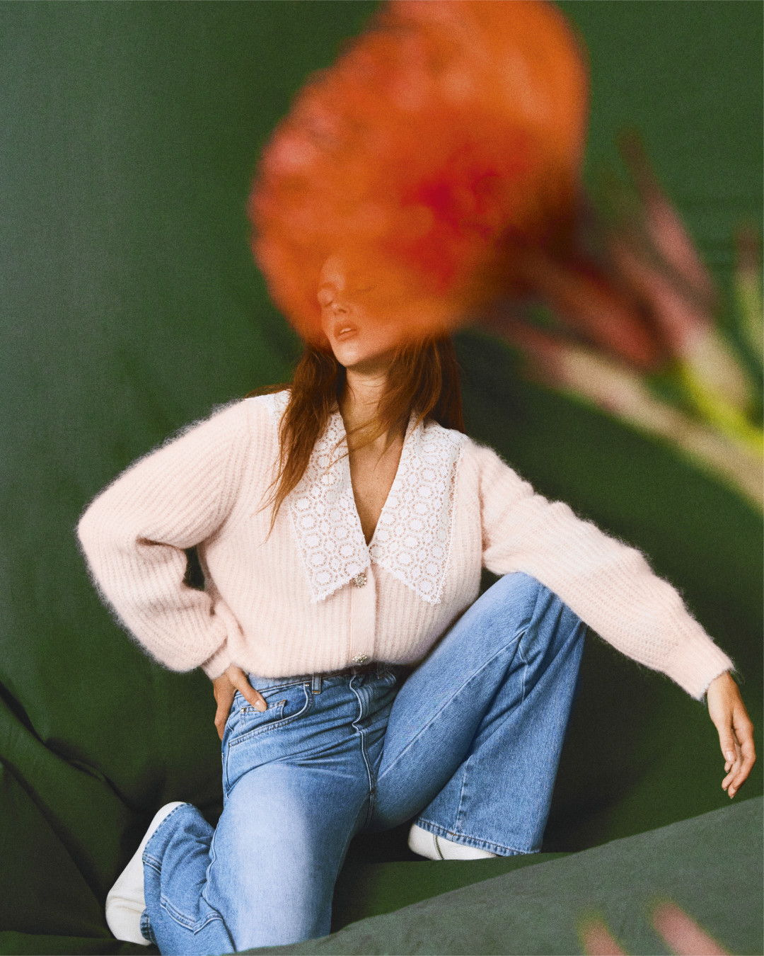 Кроме того, Claudie Pierlot посвятили фотосессию природе и зеленому цвету. Над ней работал испанский творческий дуэт Andoni & Arantxa. Итогом стали натюрморты и портреты модели Лены Баллайр.