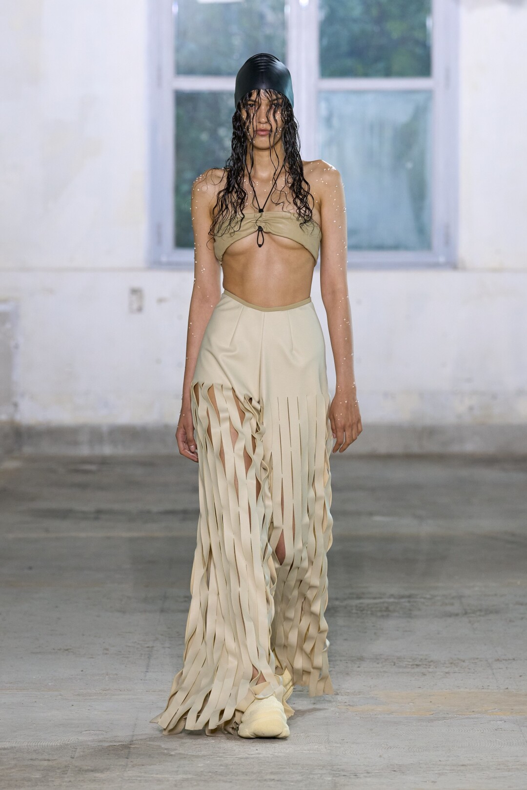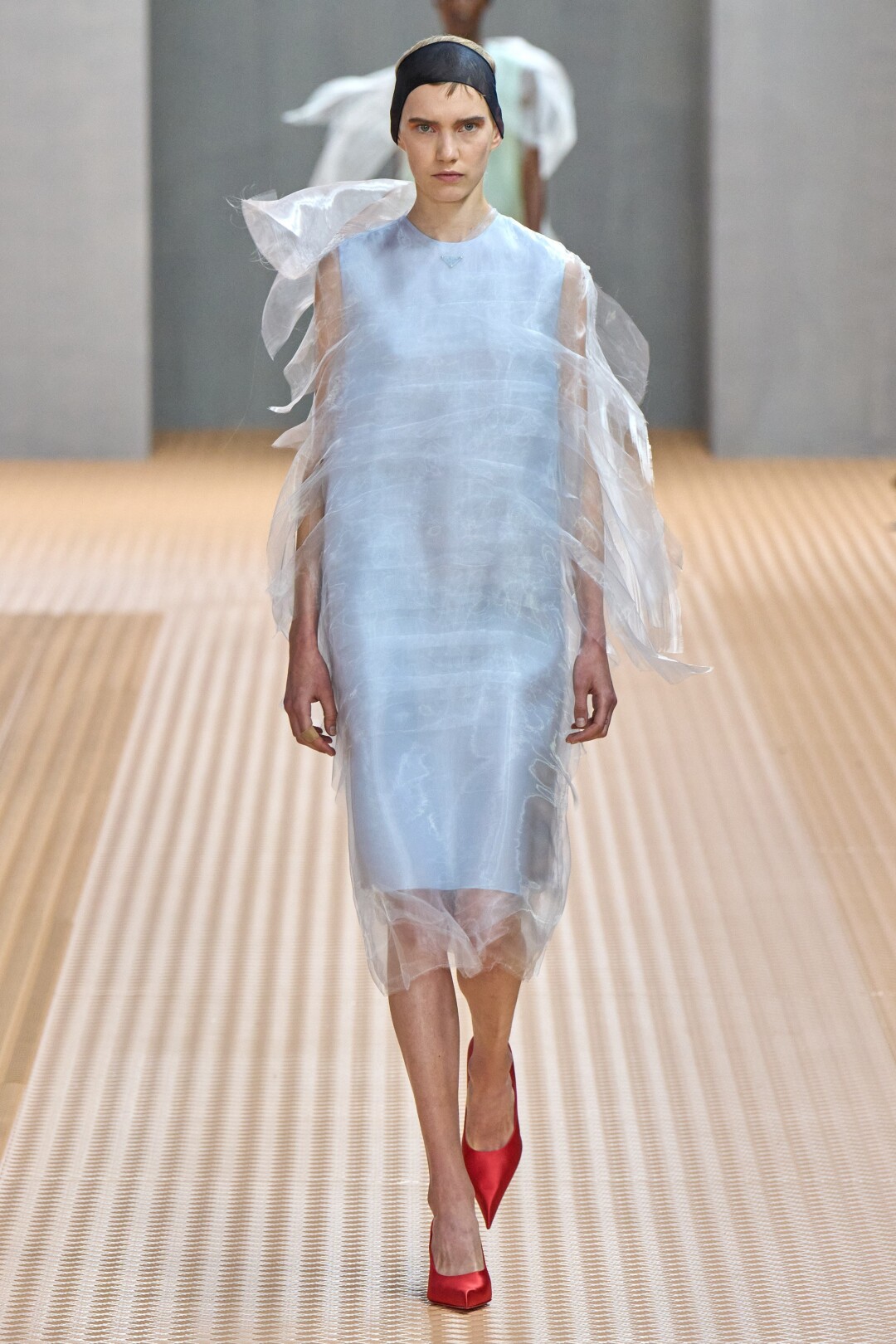 Сначала чепчик на манер шапочки для плавания надели героини Prada на весенне-летнем показе в Милане — мэтчили его с батиными куртками, полупрозрачными slip skirt и платьями-медузы из органзы. Синьора Миучча продолжила фэшн-дело на мужском показе в феврале — одела офисный планктон в яркие купальные шапочки (в оттенках аквариумных рыбок) и разноцветные рыбацкие мюли, дополнив луки очками для плавания (для виртуозного лавирования между совещаниями) и ажурными поясами, напоминающими хребет человека-амфибии.