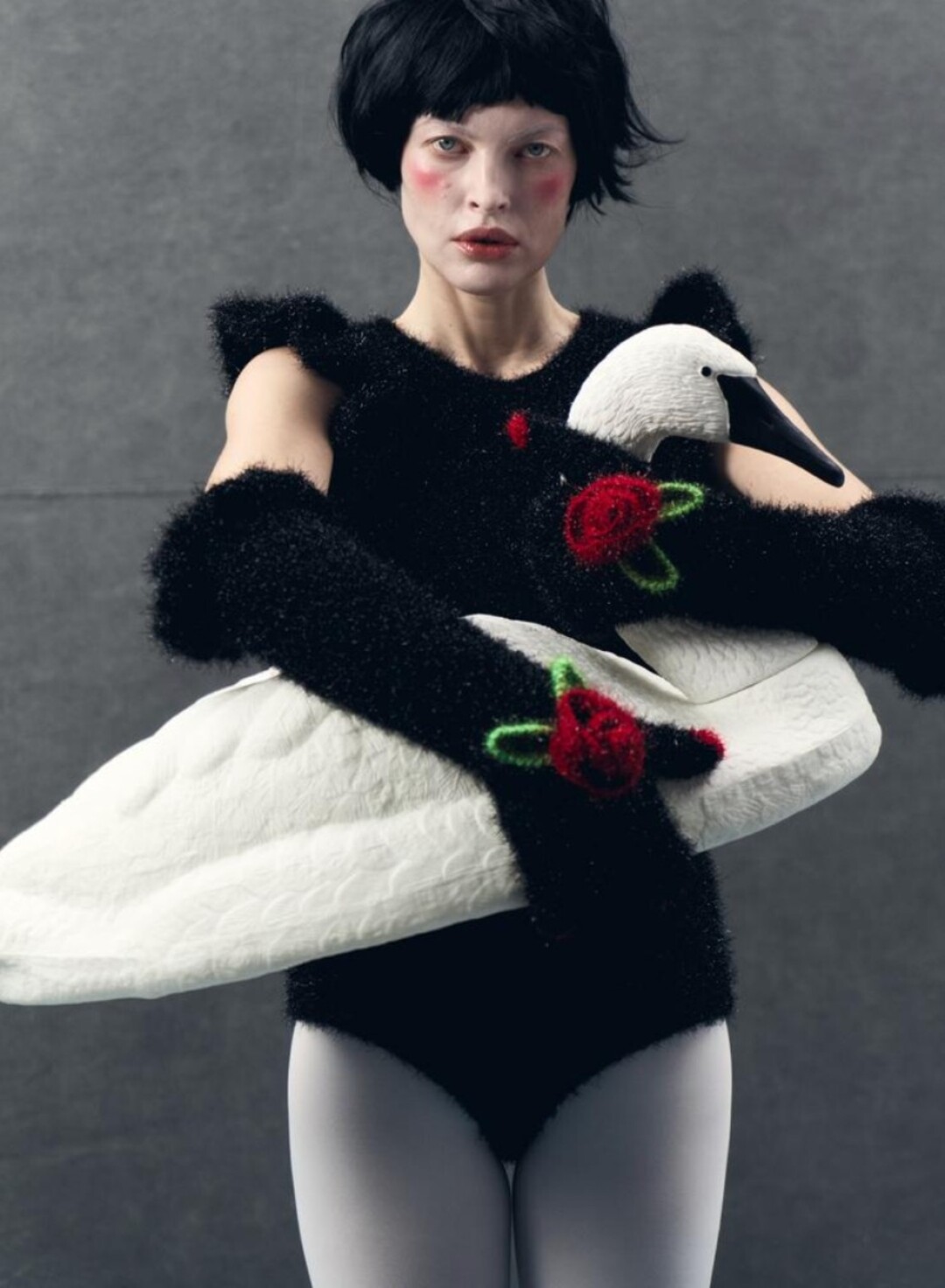 Петербургская топ-модель Аглая Ивановна — героиня кампейна M_U_R! В новой коллекции мастер цветочных ситцевых принтов и пушистых текстур Анна Дружинина приготовила полупрозрачные платья-фартуки, алые топы на завязках, сумки-розочки, цирковые блумерсы и ворсистые перчатки, украшенные акцентными ноготочками.