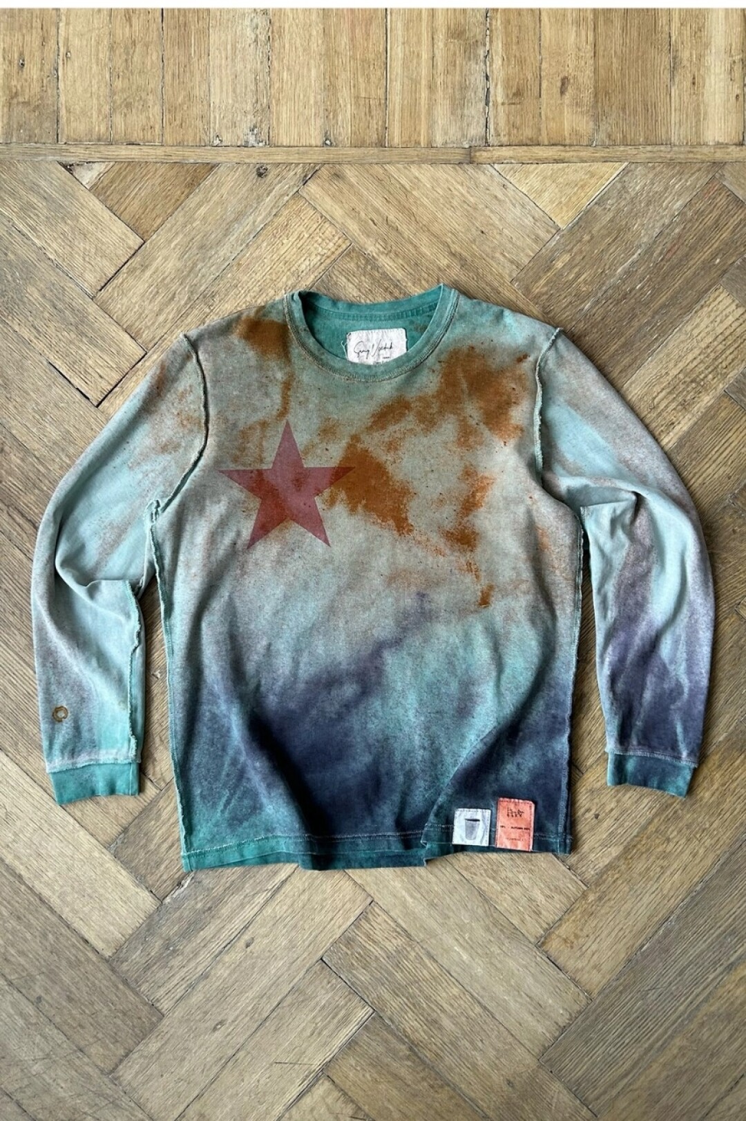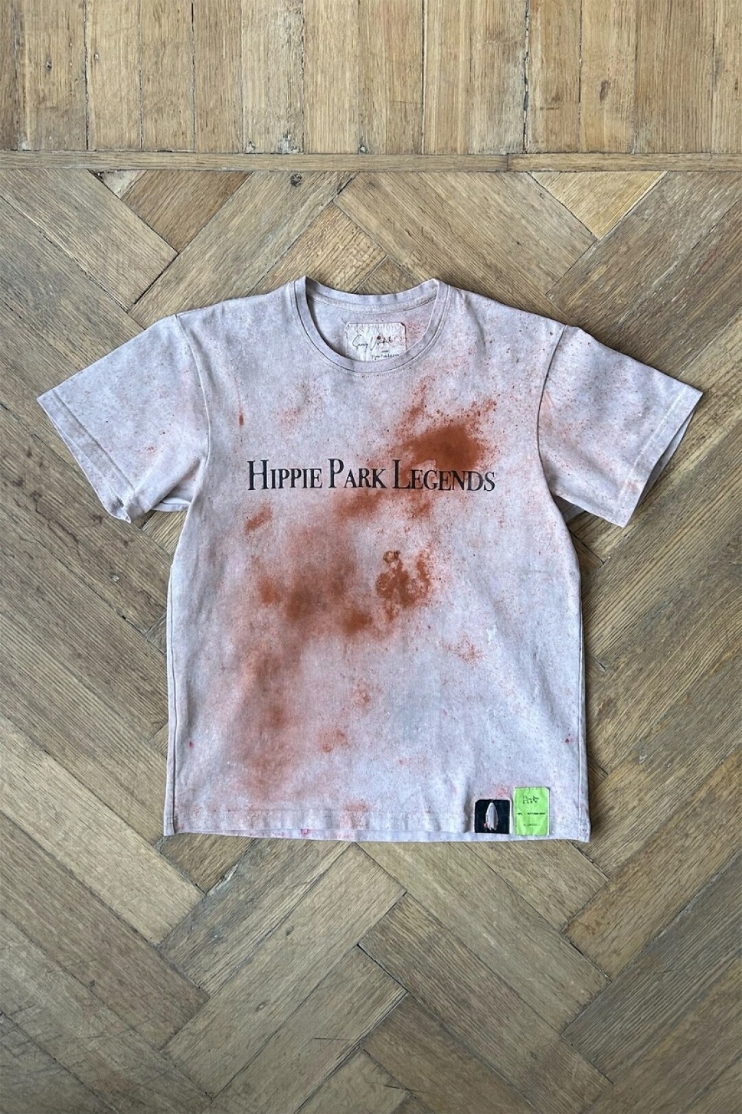 Hippie Park Legends — первая арт+фэшн капсула московского стритвир-бренда Siniy Vsadnik. В дропе — 40 айтемов, каждый из которых три недели провел под землей вместе с железными деталями — от ключей до ножниц и вело-цепей — и специальными красителями, некоторым из которых более ста лет. Взаимодействие железа, красителей и ткани дало непредсказуемый и неповторимый результат — об этой технике команда сняла документальный фильм, ставший частью артизанского арт-проекта.