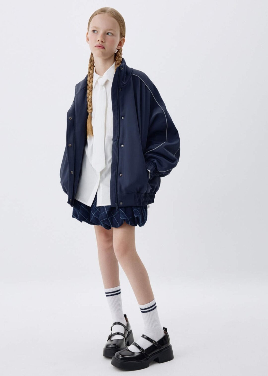 Если серьезность к лицу, даже когда всего девять, облачаемся в строгий офискор (всё по-взрослому!): за классику отвечают лакированные дерби Lime, клетчатая юбка в складку Eirene и нормкорный тренч Totti. Чтобы не скучать за школьной партой, запасаемся дофаминовыми арт+фэшн айтемами: рубашка с вороной Marni нашлась в ДТЛ, рюкзак с мини-зеркальцами и микро-расческами есть в коллекции Jeune Premier, а за разноцветной стеганкой выстраиваемся в очередь к Galka.