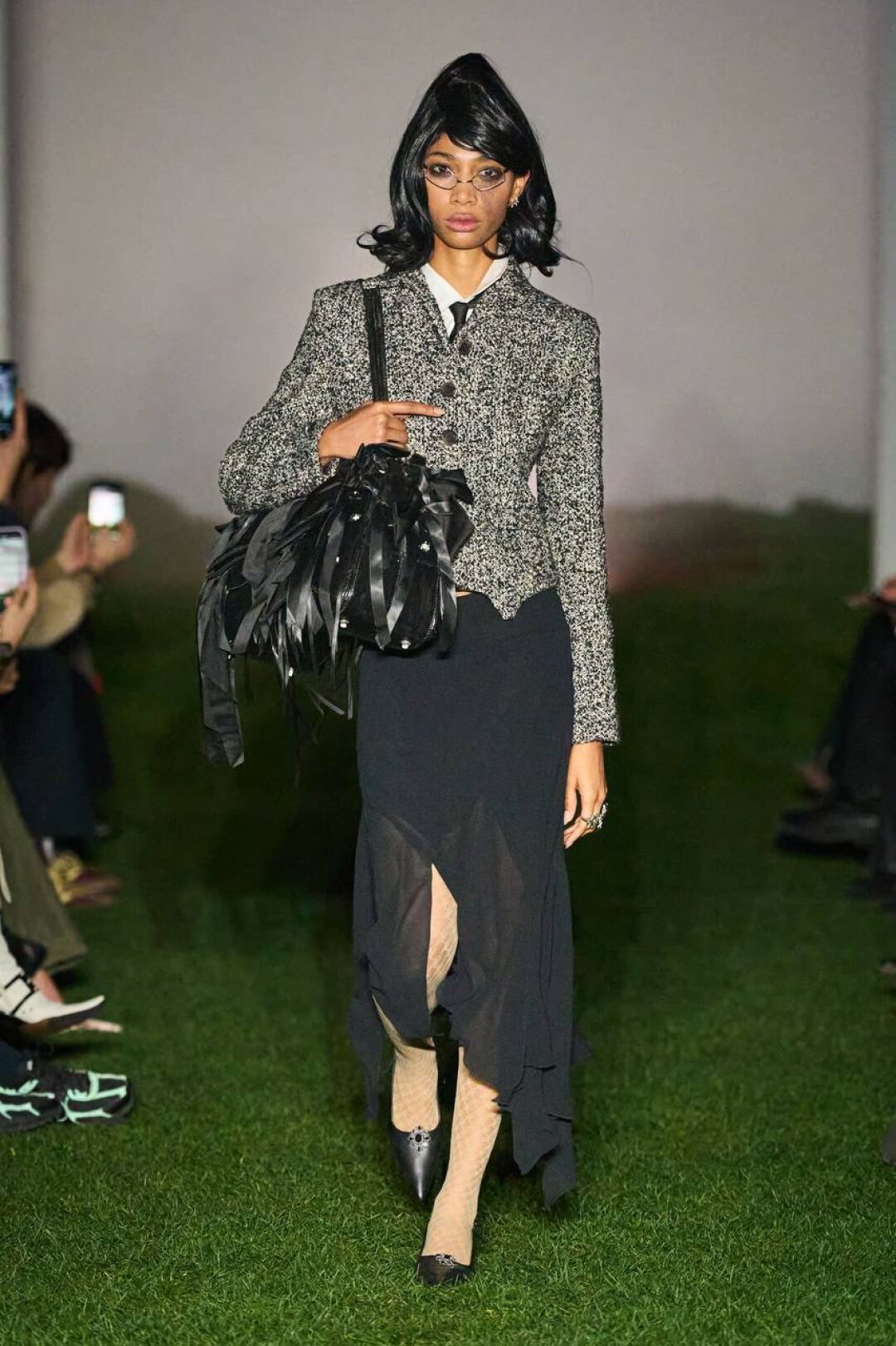 По мотивам шоу Auralee превращаемся в образцового фэшн-нерда — наслаиваем пушистый кардиган поверх полосатой рубашки и натягиваем повыше grandpacore-брюки (желательно на пару размеров больше!). Вслед за Valentino коспелим игрока школьной команды по футболу — смело миксуем спортивную джерси и культовые вансы (официальная коллаборация брендов!) с классическим офискором. А та самая учительница английского появилась на показах Bally (в клетчатой юбке-карандаш и мэриджейнах на массивной платформе) и Avavav (в приталенном жакете и тонкой оправе в духе офисных сирен).