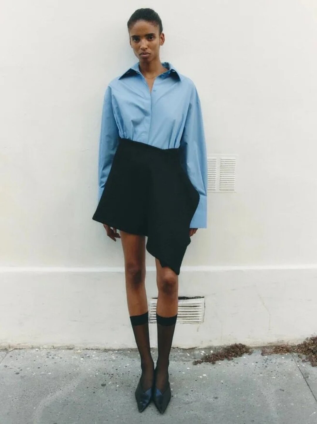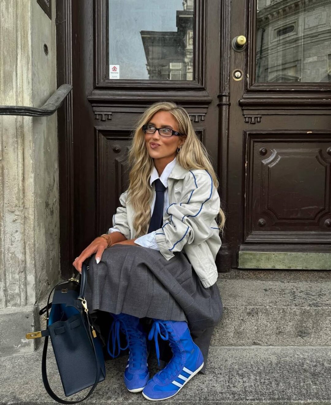 На волне вернувшейся эстетики Indie Sleaze (стиль бунтующих миллениалов в 2010-х годах) вместо «Сплетницы» пересматриваем культовый сериал Skins и косплеим главную Tumblr Girl и фэшн-икону инди-слизеров — Эффи Стонем (в сериале сыграла Кая Скоделарио). Носим оверсайз-кардиган Miu Miu с гибридами лоферов и мюлей на каблуке Martine Rose и короткими джинсовыми шортами, а в пару к рубашке из денима Saint Laurent забираем панковские мэриджейны со значками Moschino.
