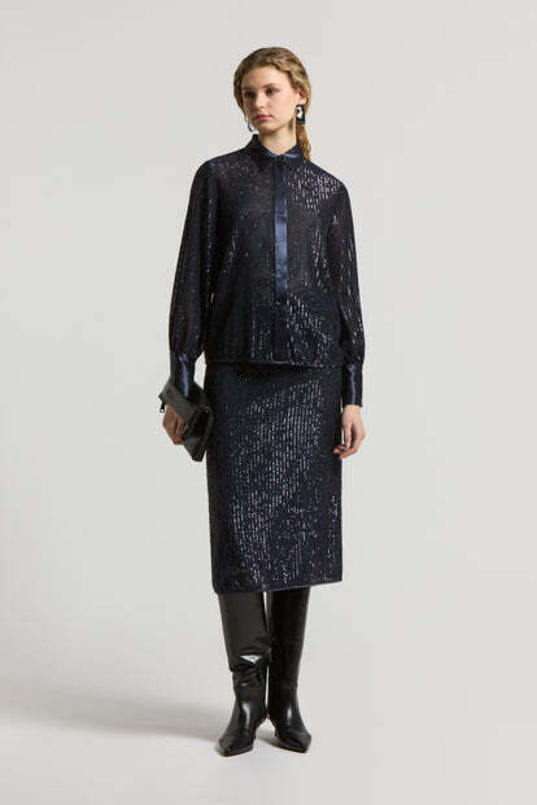 Блестящие блузы и юбки. Если вам нравится сочетание, выберите блестящую блузу с юбкой. Это может быть юбка-карандаш или пышная юбка, в зависимости от вашего стиля.
