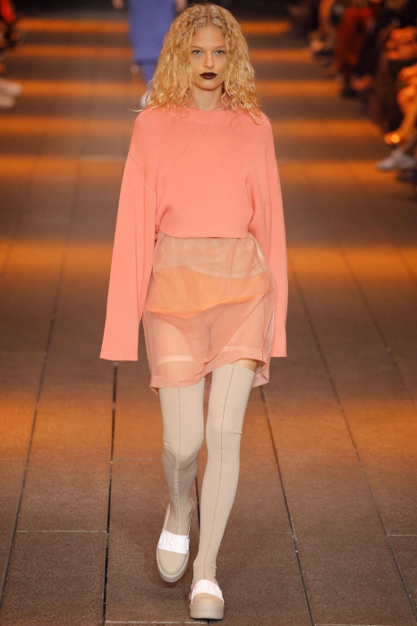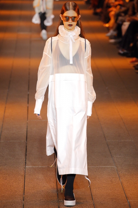 Новые дизайнеры DKNY Дао-И Чоу и Максвелл Осборн представили третью коллекцию. Напомним, год назад Донна Каран объявила о своем уходе из бренда, а генеральный директор Donna Karan International Кэролайн Браун начала программу ребрендинга, пригласив дуэт основателей марки Public School. Весенне-летнюю коллекция DKNY Чао и Осборн посвятили уличной культуре: здесь и худи с длинными рукавами, рабочие комбинезоны на кулисках, прозрачные спортивные ветровки, легинсы и заправленные в носки тренировочные штаны.