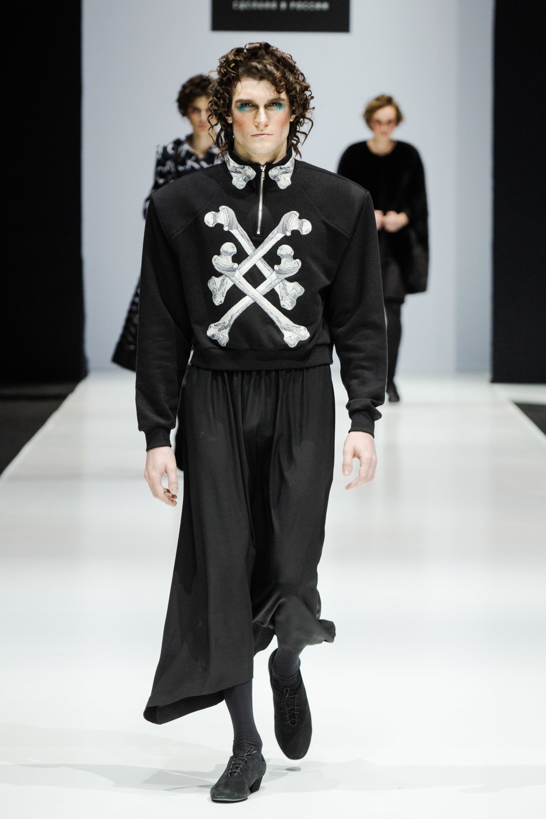 Лауреат премии «ТОП 50. Самые знаменитые люди Петербурга», дизайнер Татьяна Парфенова показа капсульную коллекцию They в рамках московской Недели моды. На этот раз на подиум выходили только мужчины — воспитанники модельного агентства Aurora Model Management, одетые в шелковые сорочки, плиссированные юбки, платья из тафты и приталенные пиджаки (или все-таки жакеты?). Как и на своем показе 2012 года, на котором парни дефилировали в английских костюмах с каскадами шифона и который многие эксперты моды назвали «слишком противоречивым» для тех времен, Татьяна Валентиновна стирает гендерные границы. И делает это под песню Филиппа Киркорова «Зайка моя», строчки из которой дублируются на платьях и свитшотах.