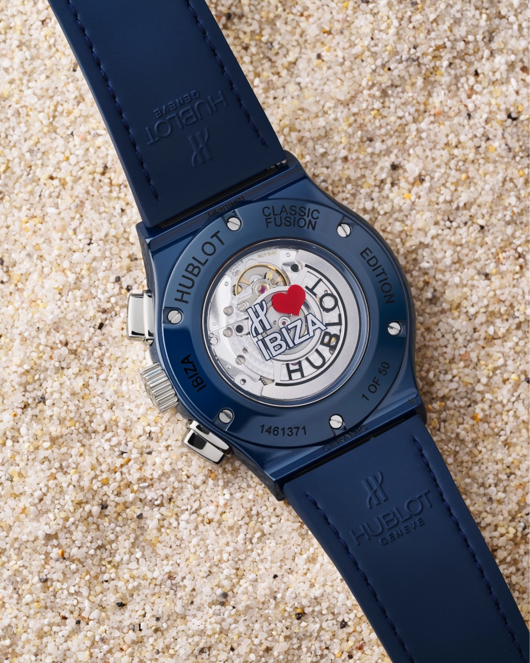 В знак уважения к движению хиппи, которое является неотъемлемой частью истории Ибицы, стрелки на отдельном секундном счетчике в положении «трех часов» сделаны в форме «пацифика» — символа антивоенного движения, мира и любви. Если перевернуть часы, то можно увидеть «сердечный» логотип серии Ibiza Edition, размещенный на сапфировом стекле задней крышки, а также указание количества выпущенных моделей — всего 50!