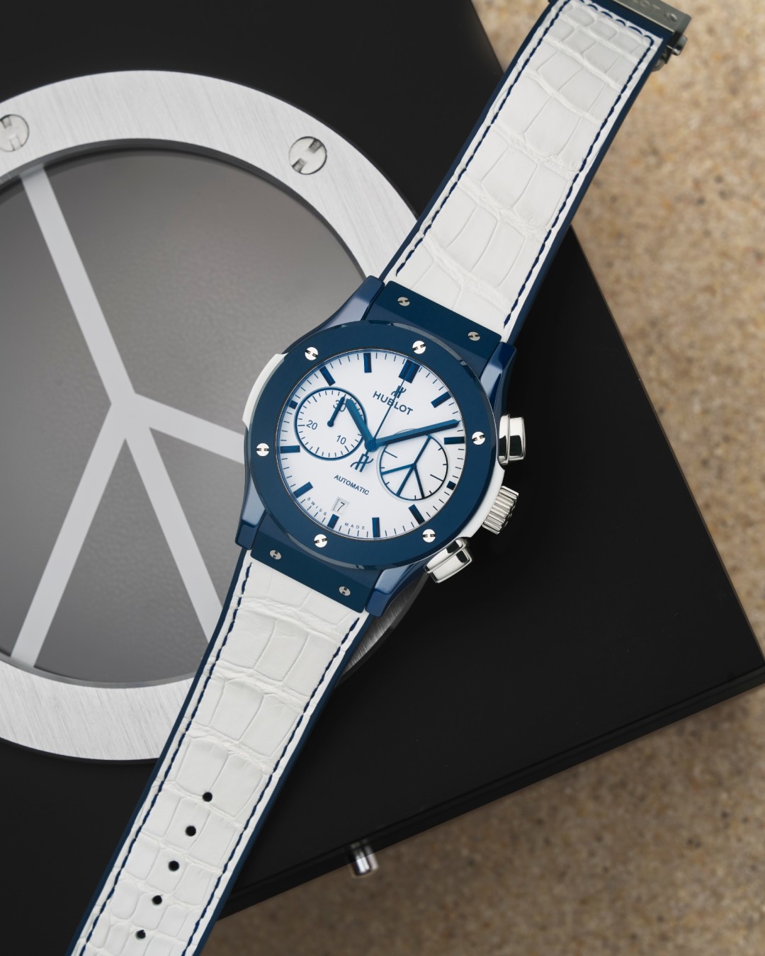 Швейцарский часовой бренд Hublot представил модель Classic Fusion Chronograph Ibiza Edition, посвященную испанскому острову Ибица и всему тому, что с ним связано: отпуску, вечеринкам, свободе и, конечно же, морю. Новинка получила матовый циферблат белого цвета, голубые стрелки с износостойким покрытием, темно-синий керамический корпус толщиной в 45 миллиметров и светлый ремешок из кожи аллигатора.