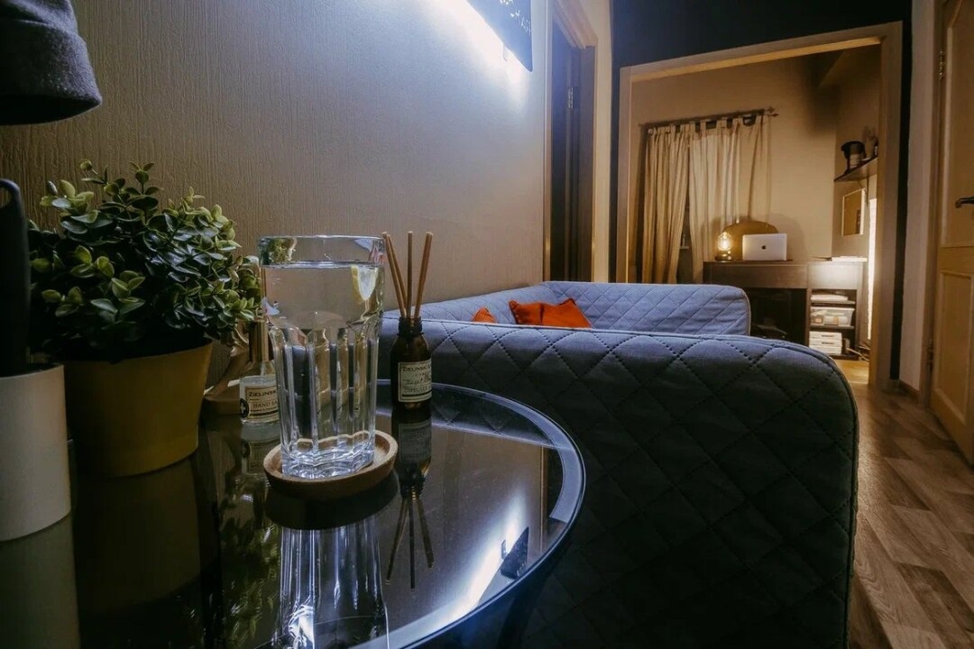 Все аксессуары отличного качества — я тщательно подбирал производителя мыла, крема, диффузоров, санитайзеров. Остановился на премиальных позициях из Израиля. Даже дезинфектор у нас стильный, долго искал вещь небанального дизайна, чтобы не выглядела как больничный прибор.