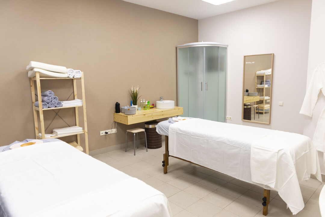 В «Рельсы-рельсы, шпалы-шпалы» позаботились, чтобы человек чувствовал себя окруженным заботой, как в детстве: гостя ждут мягкие халаты и полотенца, натуральные хлопковые простыни, приятные аромасвечи и легкие эфирные масла, а также ароматный чай. Важно, что в каждой комнате есть душевая кабина, поэтому посетитель может спокойно принять душ до и/или после процедуры.