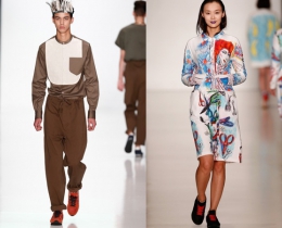 Платья с роботами или стрекозами, светоотражающие велосипедки, мужские треники с жемчугом и рюкзаки цвета клубничной жвачки.