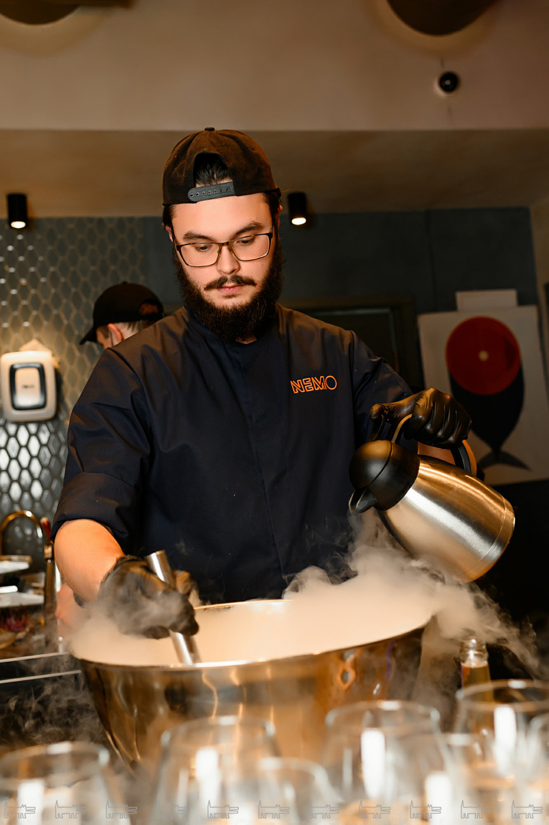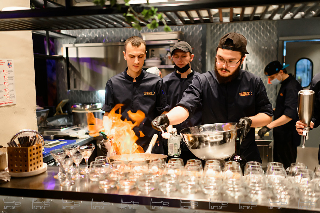На празднике в честь первого Дня рождения все было в лучших традициях NEMO – комплимент от кухни и бара, максимальная включенность команды поваров в праздник благодаря гастрошоу с огнем и жидким азотом и призы от друзей и партнеров.