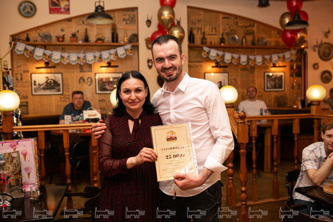 Для гостей были различные конкурсы, подарки, веселый ведущий, а также главный был разыгран главный приз - сертификат для ужина в Чешской ресторации Prazacka