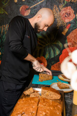 Бренд-шеф Иван Епифанцев по традиции приготовил десерт - домашний морковно-тыквенный пирог! Он идеально сочетался с горячим глинтвейном.