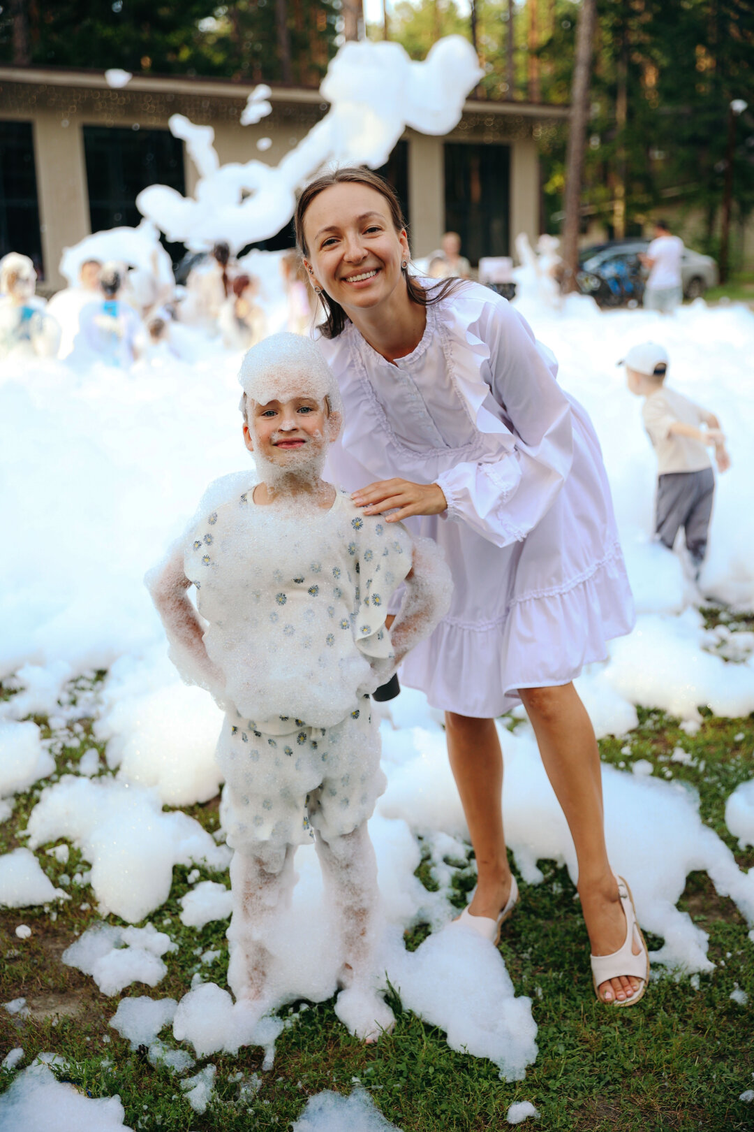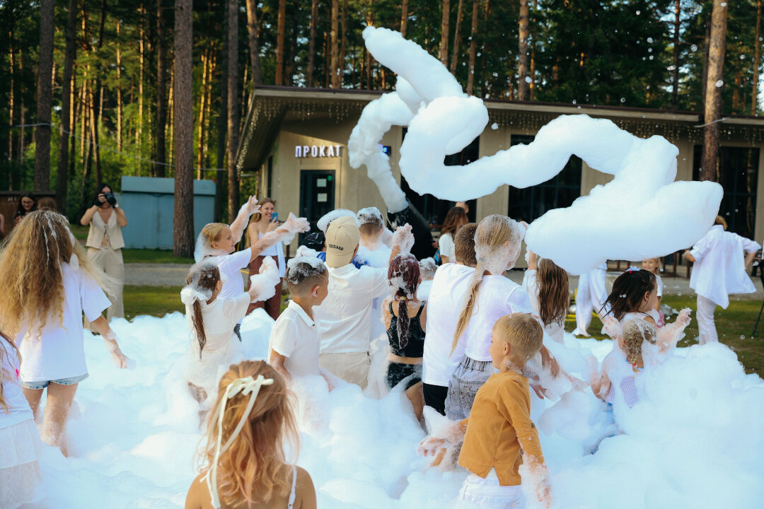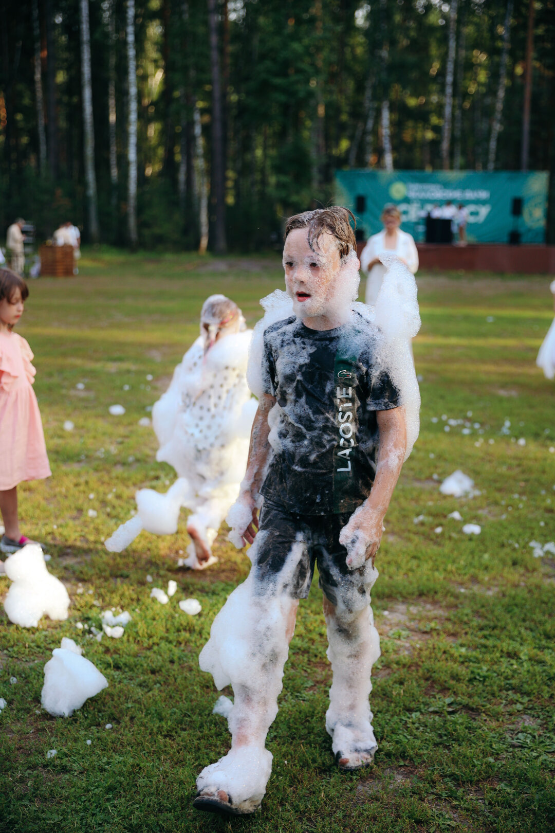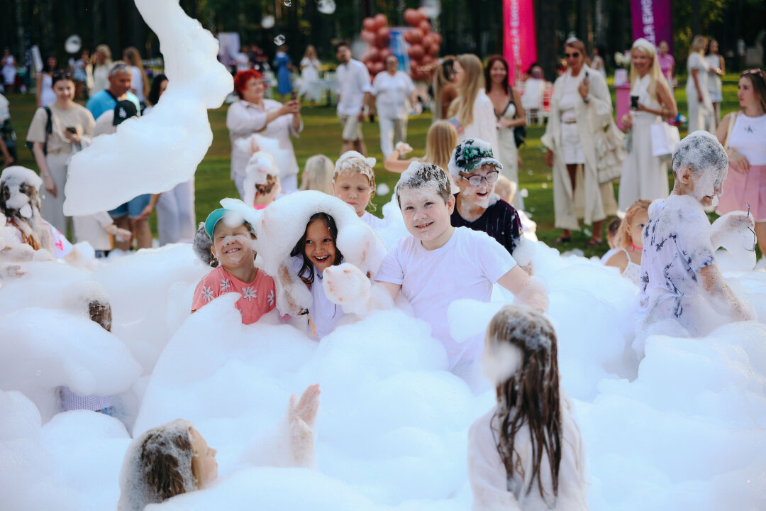 Это был идеальный вечер, как для взрослых так и для детей — просторная лужайка, коктейли от Kety bar, живая музыка, диджей сет, шоу программа от профессиональных гимнастов, а дети наслаждались мастер-классами, пенной вечеринкой прыжками на батутах и даже нарастили себе цветные пряди от салона красоты Francesca.