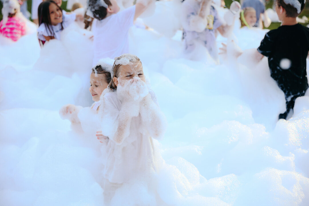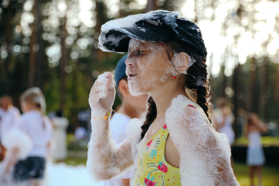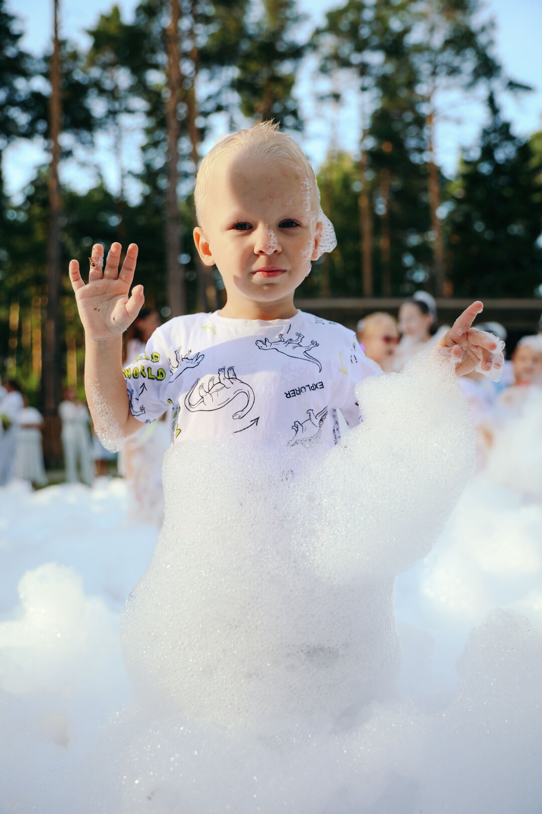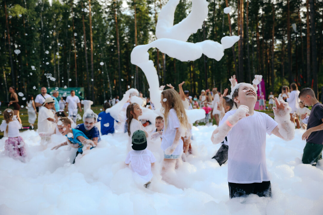 Это был идеальный вечер, как для взрослых так и для детей — просторная лужайка, коктейли от Kety bar, живая музыка, диджей сет, шоу программа от профессиональных гимнастов, а дети наслаждались мастер-классами, пенной вечеринкой прыжками на батутах и даже нарастили себе цветные пряди от салона красоты Francesca.