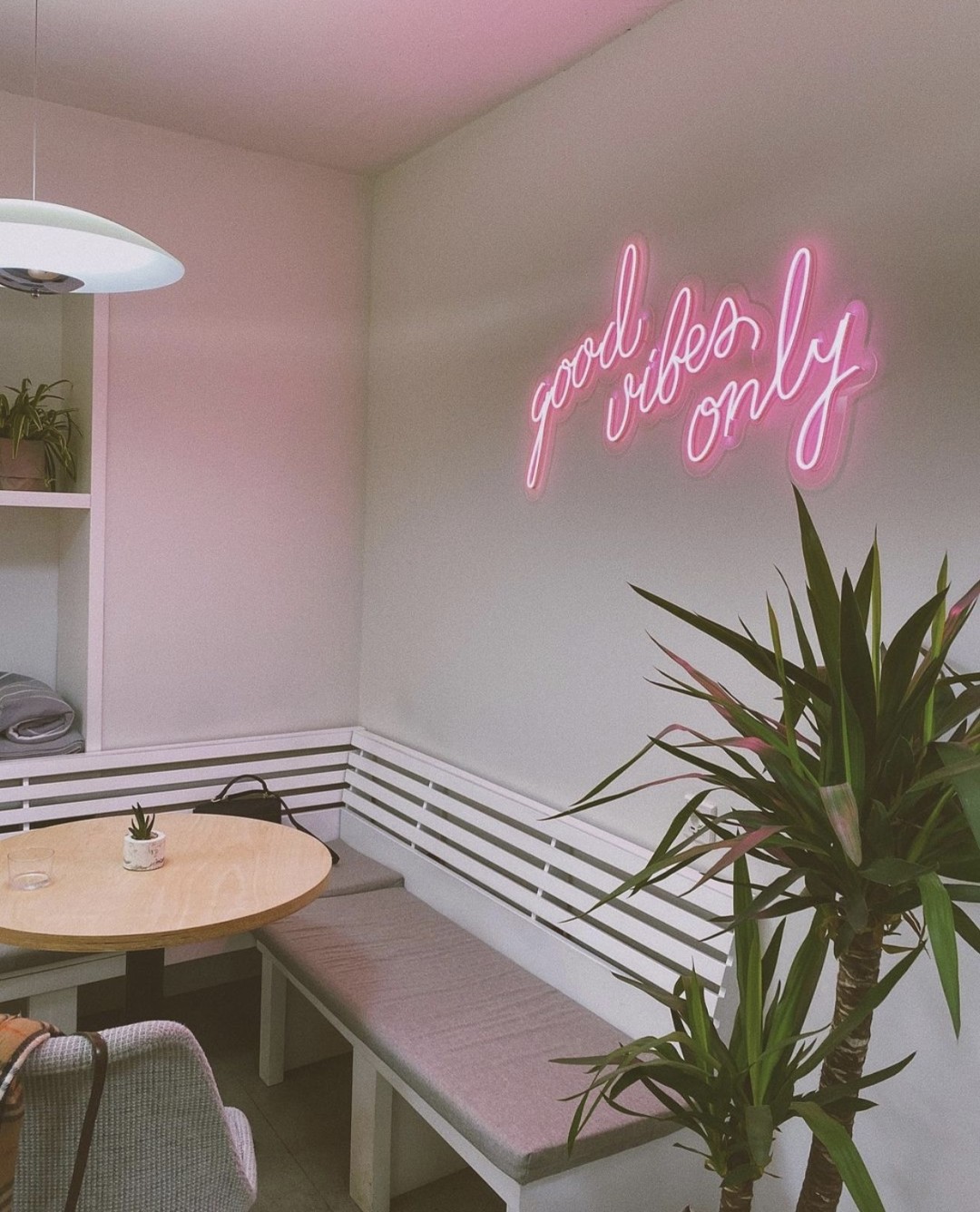 Неоновые вывески ворвались в нашу жизнь, заняв уверенную позицию в оформлении интерьеров. Неон обладает магической притягательностью: невозможно пройти мимо и не сделать пару фотографий на фоне светящейся вывески.