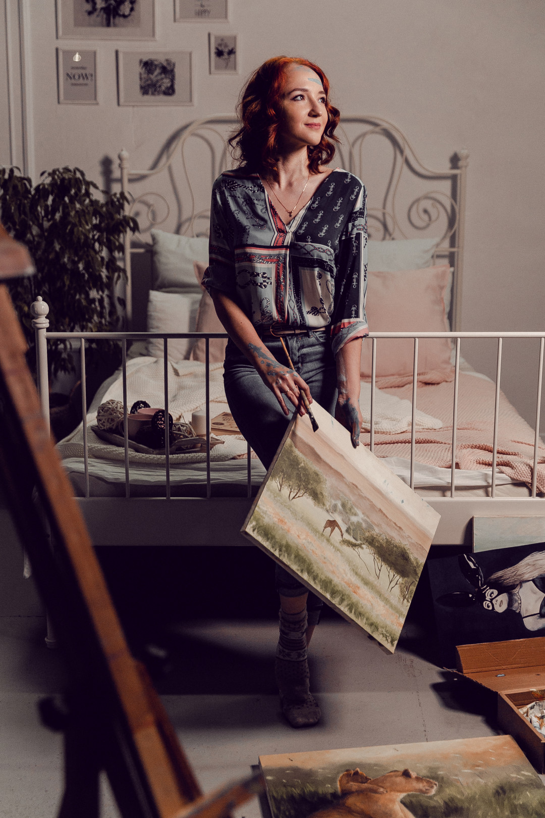 Естественно, рисую для себя. (Улыбается.) Организовываю выставки — в ноябре прошлого года, например, у меня была экспозиция «Африка». Все началось с одной картины — я нарисовала слона и долго вынашивала идею, как развить эту работу в тематическую серию. В голове вдруг щелкнуло — почему не Африка? Тем более я люблю природу и животных, и мне хотелось создать что-то нестандартное, новое для нашего зрителя. Конечно, здорово помогли преподаватели и лучшая подруга, выпускница «Пикчи», — выставка прошла на ура.