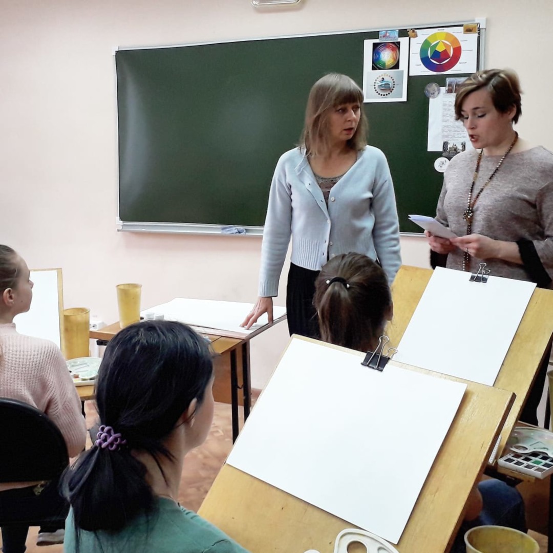 В программу занятий входит пленэр, водные, вечерние, архитектурные пейзажи, сезонные и цветочные натюрморты в технике акварель и гуаши.