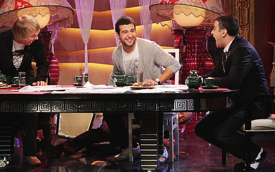 Главное, что есть в «Прожекторперисхилтон», – это импровизация. Перед съемкой выпуска с моим участием я видел подготовку к шоу. На следующий день, когда ведущие вошли в студию, у них открылись какие-то неведомые каналы, и их шутки многократно превзошли все сценарные заготовки. Что касается аналогов, видимо, телезрители будут искать юмористические, но я, как телевизионщик, вижу сходство с программой «Что? Где? Когда?». Когда перед тобой есть вопрос и всего шестьдесят секунд на ответ, то в подсознании открывается информационный банк. Некоторые потом говорят: «Я и сам не понимаю, откуда знал это». Так же и с ребятами. Достаточно посмотреть, какие у Сергея Светлакова рождаются интересные литературные образы из всей, казалось бы, внешней белиберды».