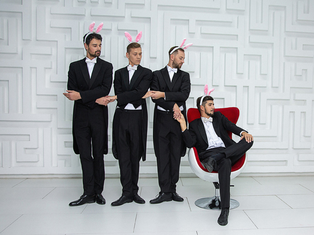 «Заячий стон» - это зависимый театральный проект, интеллектуальный юмор «на грани» с элементами абсурда от квартета молодых актеров театра «Ленком». Знакомьтесь, Максим Амельченко, Виталий Боровик, Алексей Поляков, Кириллл Петров.