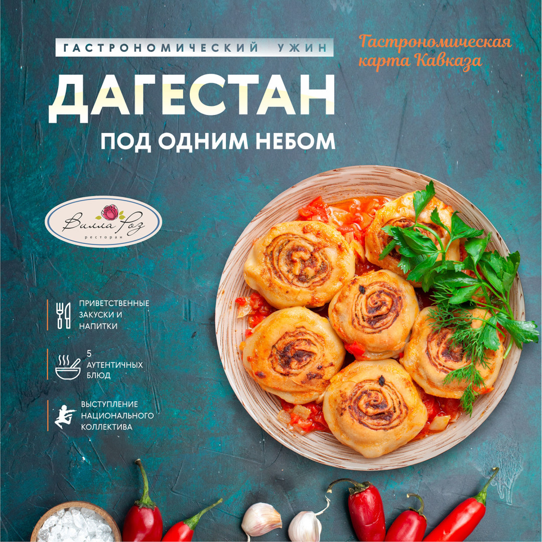 Не пропустите самое вкусное событие уходящего года! Ресторан «Вилла Роз» вновь приглашает любителей кавказской кухни на тематический ужин, посвященный республике Дагестан.