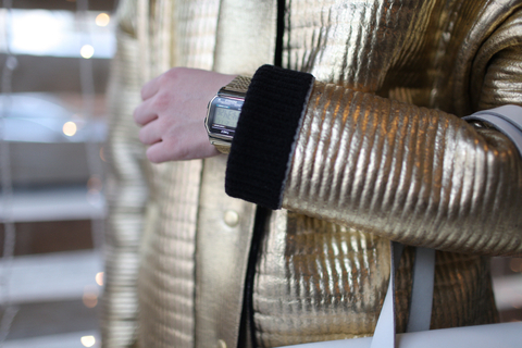 На Светлане: очки Mykita & Alexandre Herchcovitch, плащ Stella McCartney, часы Timex, клатч Comme des Garcons