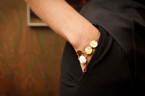 На Наталье: платье Givenchy, винтажное ожерелье из жемчуга цвета шампанского, браслет и серьги Ulyana Sergeenko, браслет-талисман с именами троих детей Натальи.