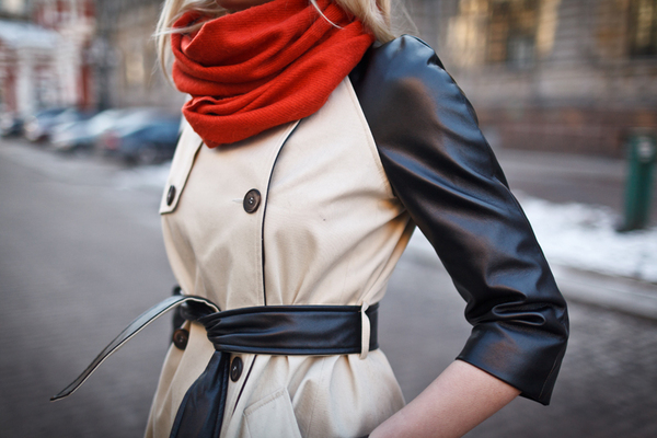 На Евгении: плащ Topshop, обувь неизвестного дизайнера, шарф из Хельсинки, сумка Furla
