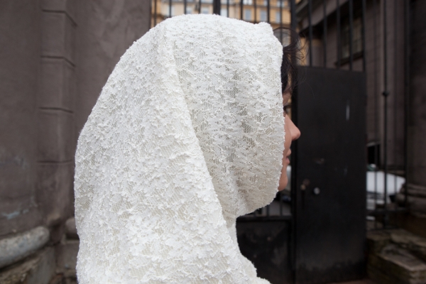Платье Comme des Garcons, шуба Maison Martin Margiela, обувь Chloe, сумка Alexander McQueen.