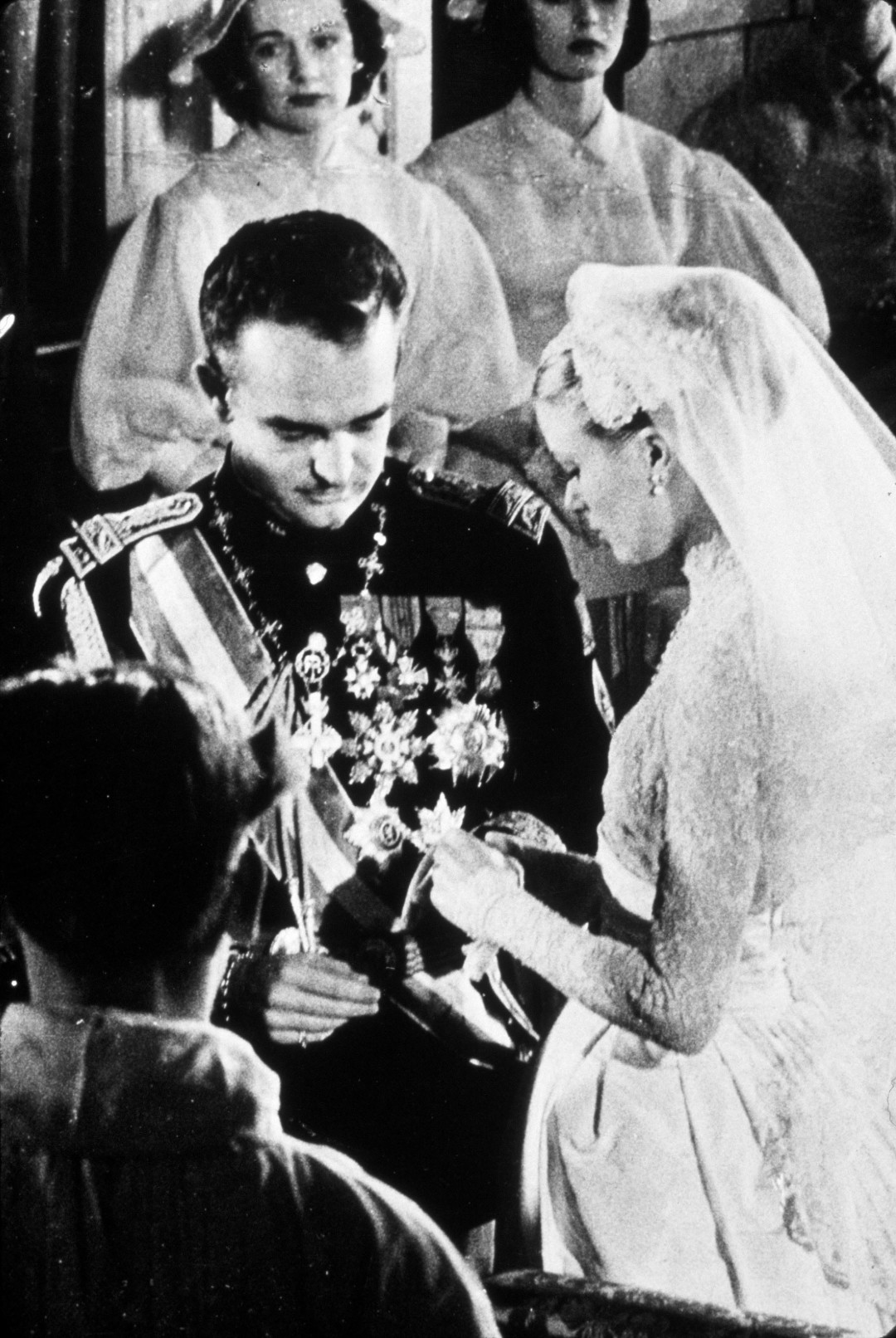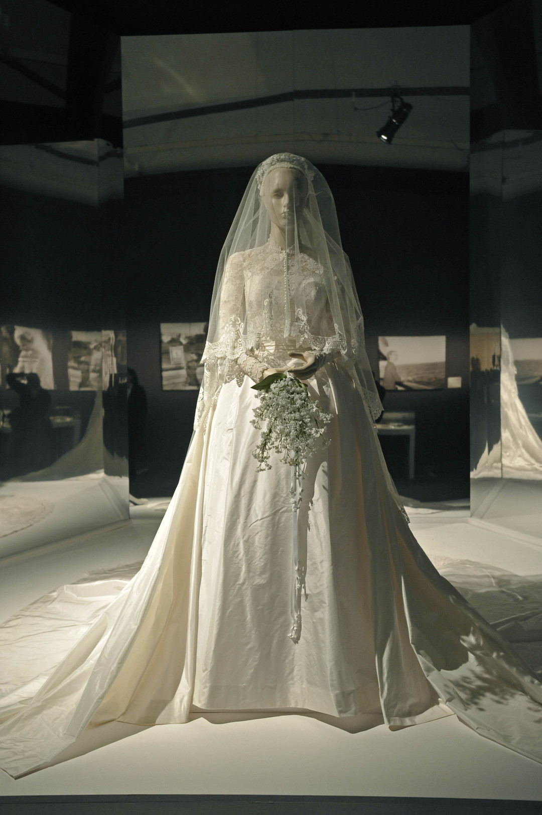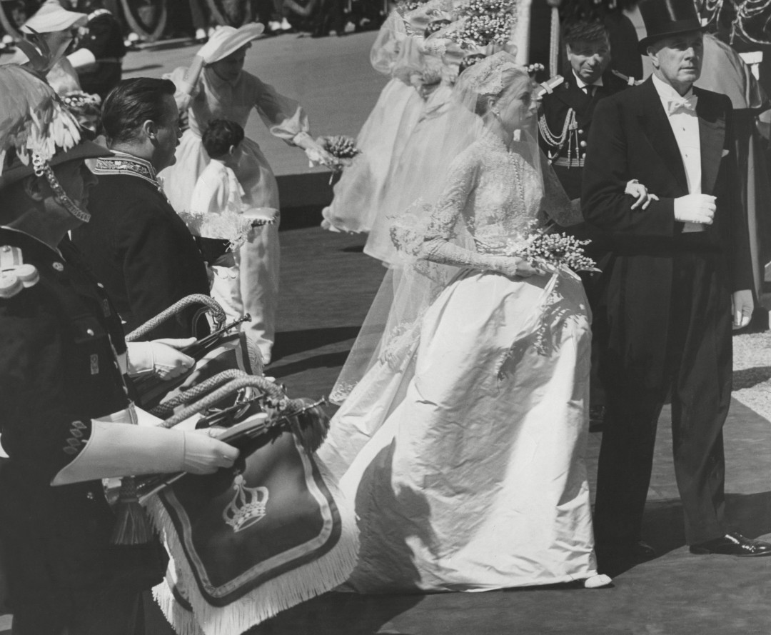 Свадебный образ Грейс Келли считается хрестоматийным примером свадебного платья пятидесятых годов, хотя его цитируют и по сей день (самый яркий пример современности — Кейт Миддлтон). Платье-нетленку создала художница по костюмам кинокомпании Metro Goldwyn Mayer Хелен Роуз, она же работала над нарядами для героинь Грейс Келли в фильмах «Лебедь» и «Высшее общество». Пышное свадебное платье Келли с закрытым кружевным верхом и длинным шлейфом состояло из трех частей: нижней юбки из широких кружевных оборок, корсета из тафты, покрытого кружевом, с пришитой к нему юбкой с кринолинами и верхней юбки с широким шелковым поясом с горизонтальными складками. По-королевски сложный наряд!