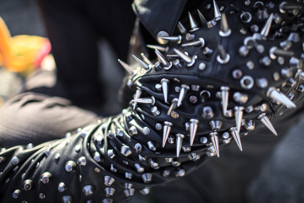 На Саше: рубашка Topshop дисконт, кепку Vikings украл, куртку с шипами купил на Удельной в 2007 году, она из кожзама и разваливается по кускам — чтобы скрыть недостатки, один мой приятель заделал ее шипами, кроссовки New Balance другой приятель привез мне из-за морей — они стали моими за 1000 рублей, очки а-ля Ray Ban из пространства «Культурра».