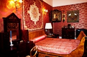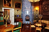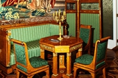 На втором этаже у нас есть “Царская комната”, как мы ее называем, с портретами членов династии Романовых, а в ней — два огромных черных дубовых буфета. Мстислав Леопольдович как-то в 1960-е годы приехал на гастроли в Свердловск, где увидел в кафе местной филармонии этих исполинов. “А откуда они у вас?”— спросил Слава. “А из Ипатьевского дома, в котором расстреляли царскую семью”. Оказалось, что перед сносом этого дома их привезли в филармонию и много лет трудящиеся открывали бутылки о головы резных фигур на буфетах, — отношение к мебели было варварское. Слава предложил их продать, но ему отказали, на них были инвентарные номера. Тогда Ростропович несколько лет отказывался выступать в Свердловске, пока руководство местной филармонии не изменило свое решение: там сделали ремонт, выбросив “эти дрова” на чердак за ненадобностью. После чего Слава привез их в Москву в разобранном состоянии, но они не помещались ни в московскую квартиру, ни на дачу: высота большего из буфетов четыре с половиной метра. Пришлось нам возвести для них пристройку — зал и прилегающий к нему домик, в котором потом пять лет жил Александр Исаевич Солженицын». Зато теперь в петербургском особняке им самое место. Сегодня Галина Павловна и ее дочери редко бывают в этом доме. По соседству, на Дворцовой, Адмиралтейской и Английской набережных, немало роскошных царских и великокняжеских резиденций, давно занятых музеями, научноисследовательскими институтами или творческими союзами, но лишь в здании на набережной Кутузова семье Ростроповичей удалось создать жилой дом с настоящими дворцовыми интерьерами — случай уникальный для Петербурга наших дней.