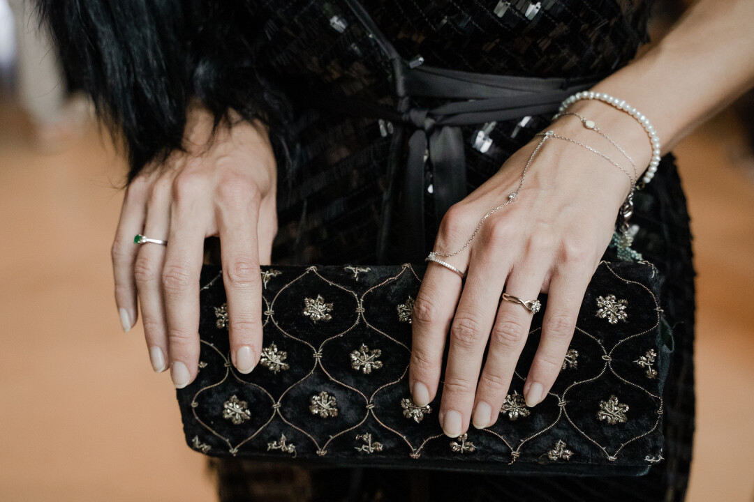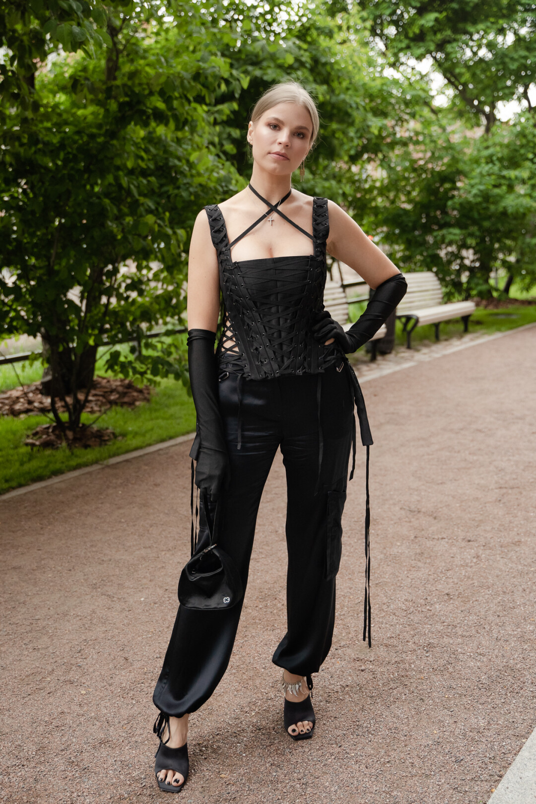 Сегодня меня собирала стилист Саша Федо, она тоже здесь, на мероприятии. Мы любим миксовать люкс и российских дизайнеров. В фаворитах среди локальных марок Sorelle и Say No More, например».