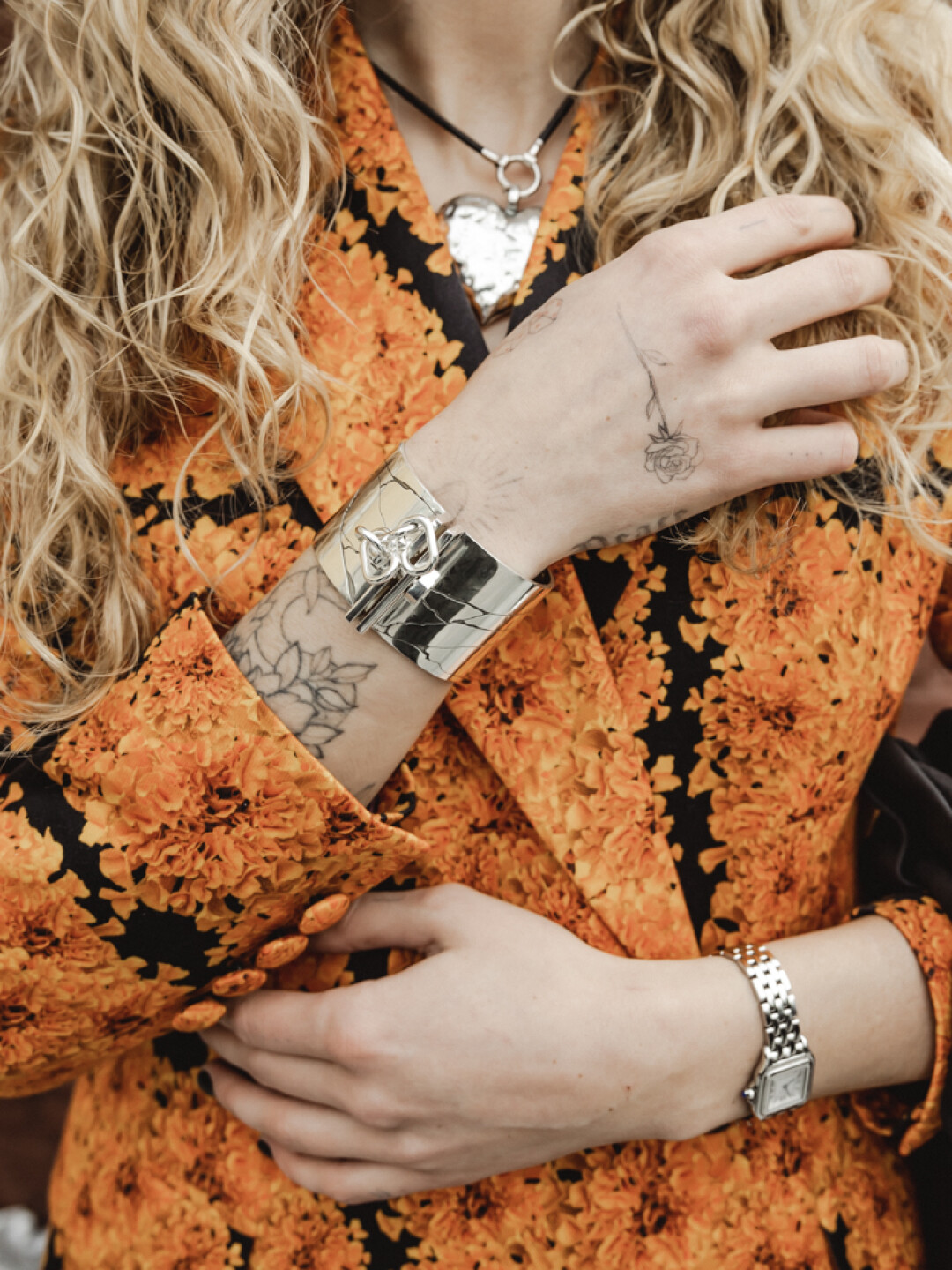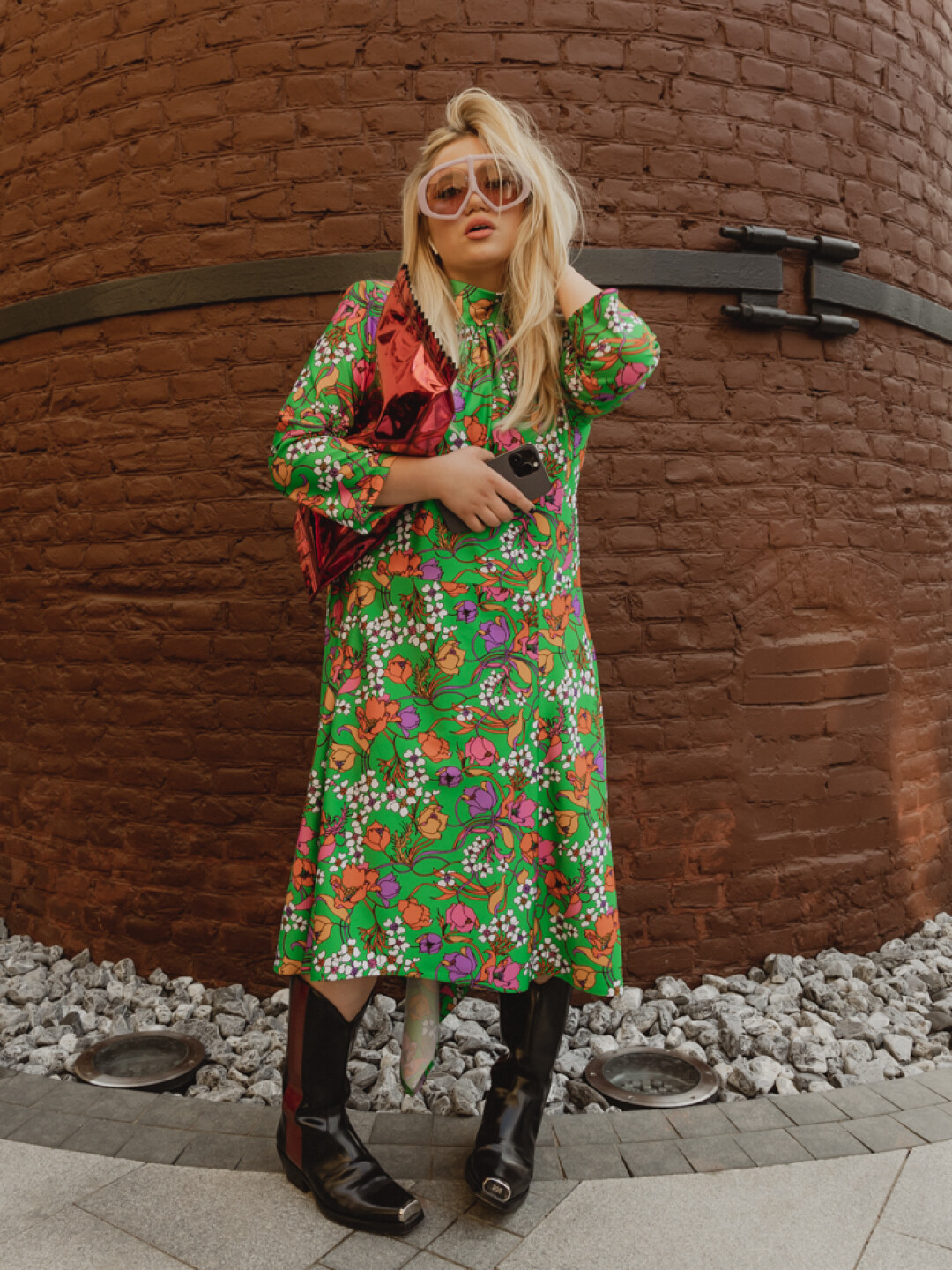 Чем импортозамещаете ушедшие бренды: импортозамещать не пришлось — люкс покупаю за границей или на ресейле (в Pif Paf Supershop попадаются настоящие сокровища!), а со всем остальным прекрасно справляются локалы. За базой уже много лет хожу в Ushatava, за арт-панк в моем гардеробе отвечает Оля Гинзбург и ее бренд OlaOla (только посмотрите на этот жакет с бархатцами!), а безупречные костюмы и коктейльные платья нахожу в Autentiments. Еще одна любовь — Subbota Store. У девочек идеальная подборка российских брендов от мятных жакетов Bunny Poem до диких украшений с розами Сaviar Jewellery.