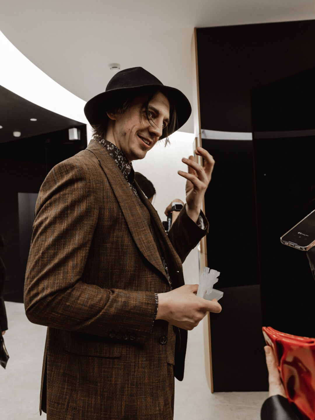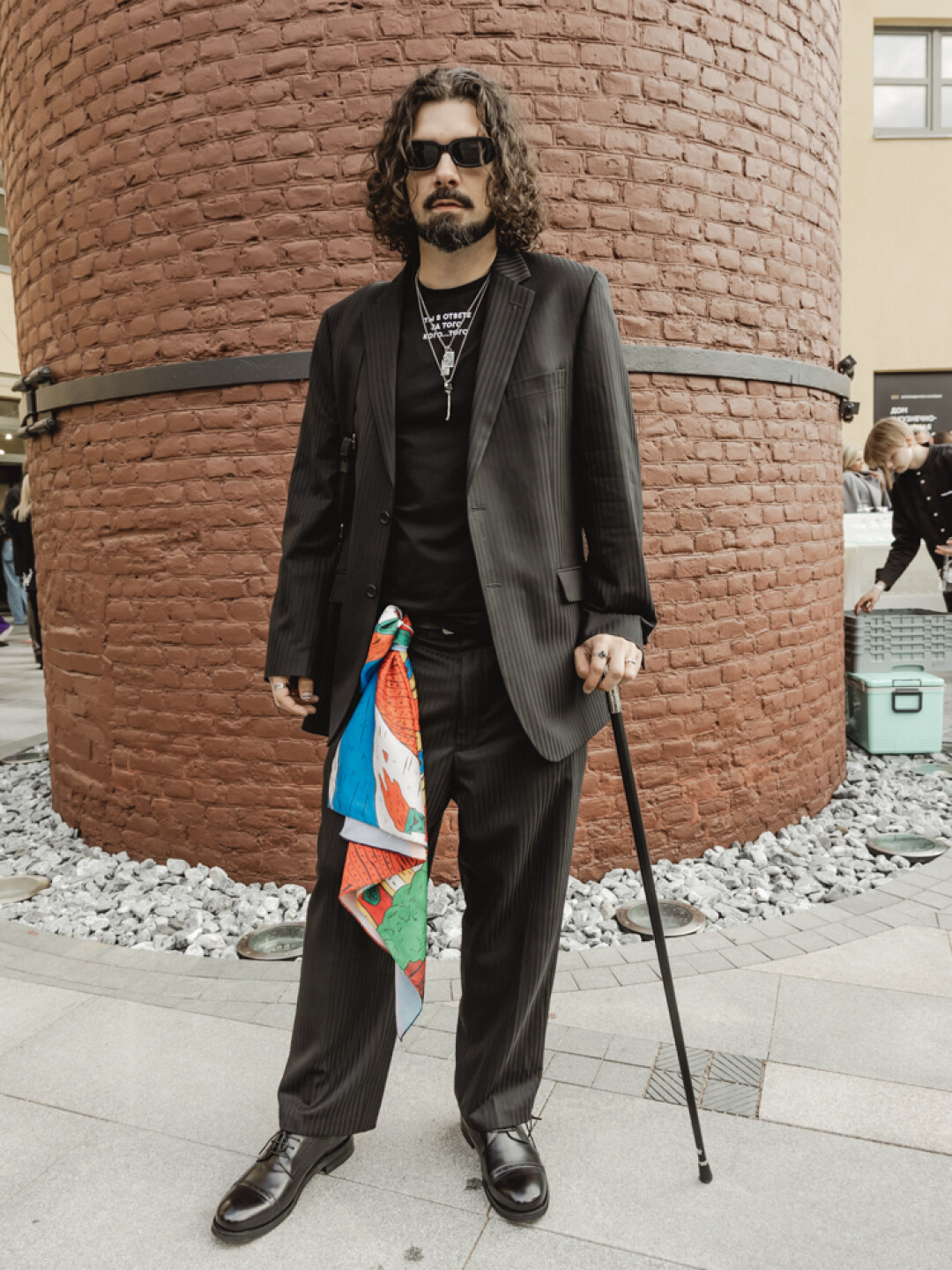 Чем импортозамещаете ушедшие бренды: Ничем, у меня другой подход. Например, сегодня я строил образ от синяка. Я знал, что у меня синяк и сломан нос. Поэтому я выбрал шляпу, она – театральный реквизит, прическа у меня и так подходящая – длинные волосы для проекта, а ребята из Barleone помогли мне быстро выбрать правильный костюм.