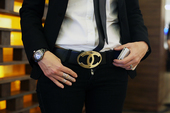 пиджак H&M, джинсы Mango, рубашка Topshop, галстук мужа Dolce&Gabbana, сапоги United Colors of Benetton, часы Chanel