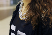 пальто и футболка Zara, шорты H&M, ботильоны Miris, сумка AFW, цепь молодого дизайнера Ксении Уж