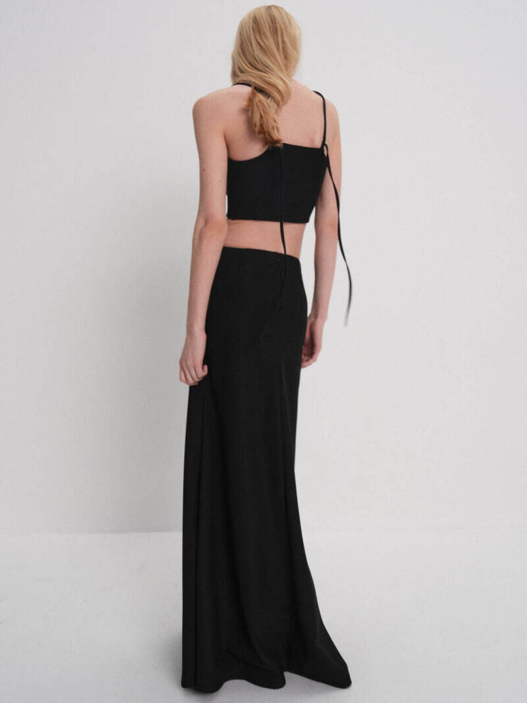 Первый дроп бренда вдохновлен эстетикой брутализма кино начала двухтысячных, в который вошли черные водолазки и лонгсливы, топы на бретелях, юбки и платья со шлейфом. Коллекция будет представлена эксклюзивно на официальном сайте бренда.