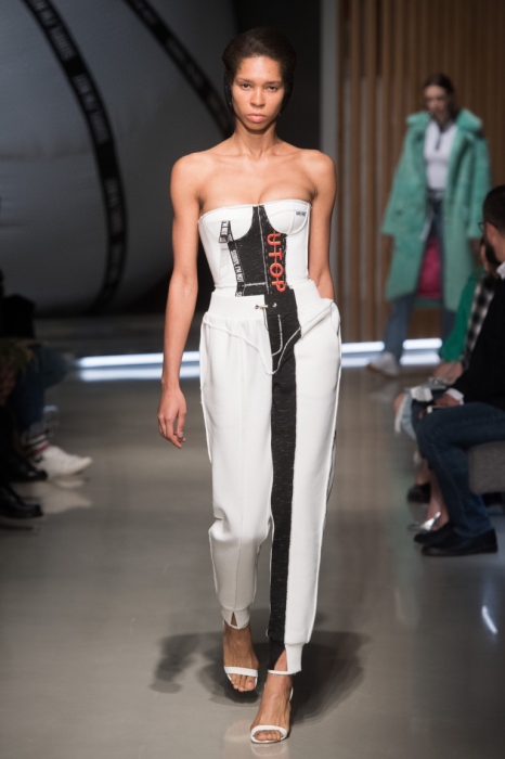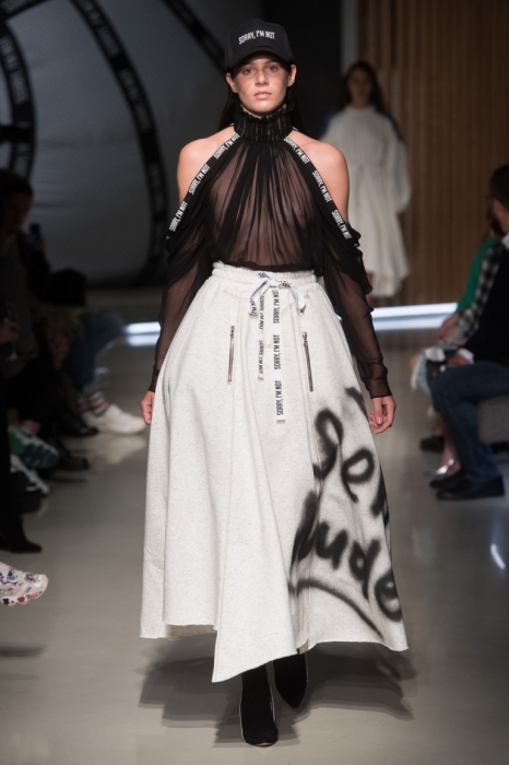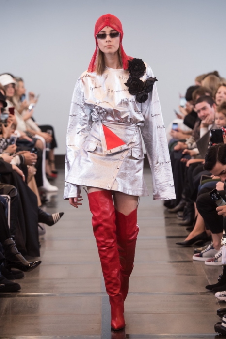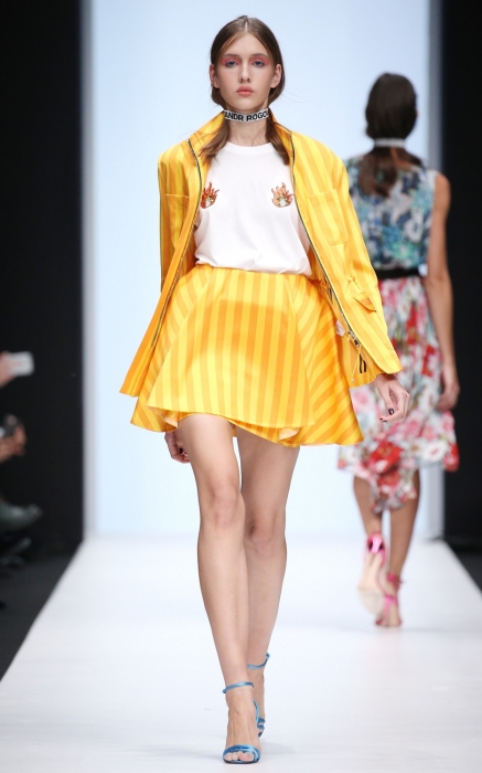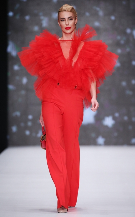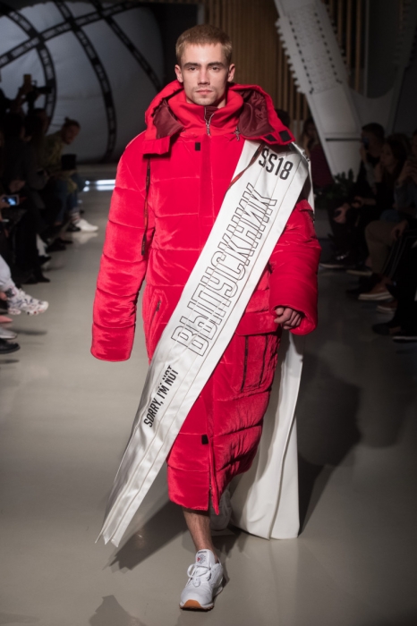 Екатерина Петухова: Это, очевидно, самый дорогой показ — его открывала Ольга Бузова. Причины успеха этого бренда в том, что русские женщины одеваются, чтобы порадовать и привлечь мужчин и вызвать зависть у женщин. Тут оба условия выполняются. В вещах чувствуется целеустремленность. Я все думала, как обозначить стиль марки, но за меня это сделали ее создатели — на сайте четко и лаконично названо «прикрытая сексуальность». Мне нравится, как бренд работает с коллективным бессознательным (возможно, даже не покидая зону этого коллективного бессознательного) — я долго вглядывалась в логотип, пытаясь понять, что он мне напоминает — это же пакет с Марианной! Помните? Такой был в каждом доме в 90е!