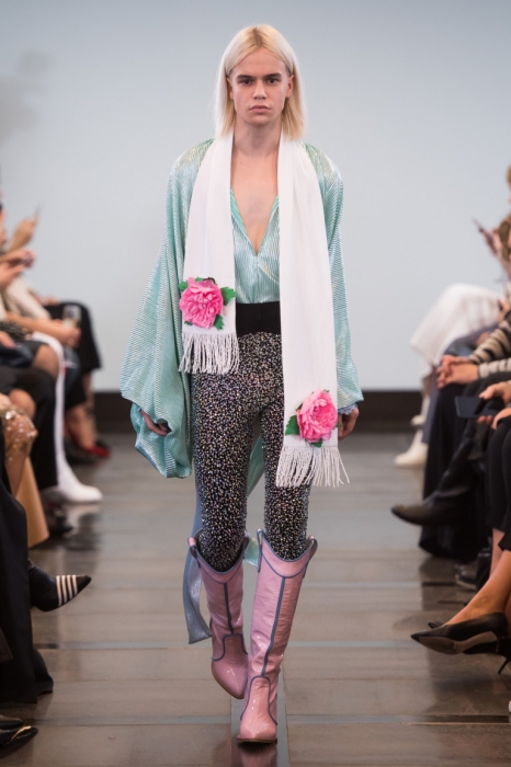 Мэган Виртанен: Не знаю, как насчёт «россиянки, попавшей на Марс», но хипповки получились весёлые. По крайней мере, для меня это не столько 2000-е, сколько дети цветов. Конечно, «прихиппованных» образов разной степени забавности мы за последние три года видели на подиумах много, но наконец-то кто-то сделал их не похожими на иллюстрации из модного журнала начала 70-х. Да и начала 2000-х, если уж на то пошло.