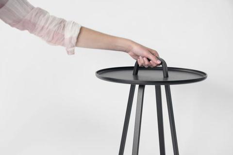 Такие столики обычно не имеют постоянного места в доме и передвигаются в зависимости от того, где они нужны в данный момент больше всего. Tor спроектирован так, чтобы передвигать столик было как можно легче. Приподнятый край предотвращает соскальзывание предметов с поверхности. Ручка, образованная оригинальным расположением столешницы, делает Tor удобным для переноса и является основным акцентом объекта.".