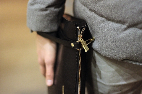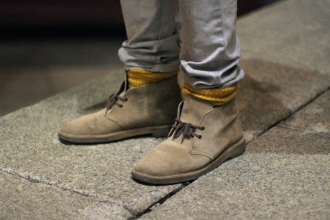 На Александре: бушлат, рубашка и джинсы Beguin, вязаные носки Work, обувь Clarks Originals, папка Ermenegildo Zegna