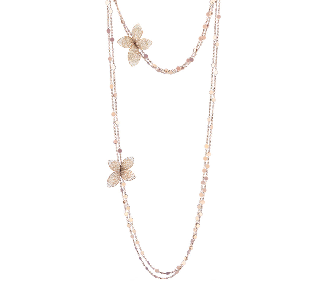Сотуар из розового золота обманчив, как трипы героев фильма «Куда приводят мечты». С одной стороны это росистые цветки (с вручную инкрустированными бриллиантами), а с обратной — гладкокрылые бабочки.