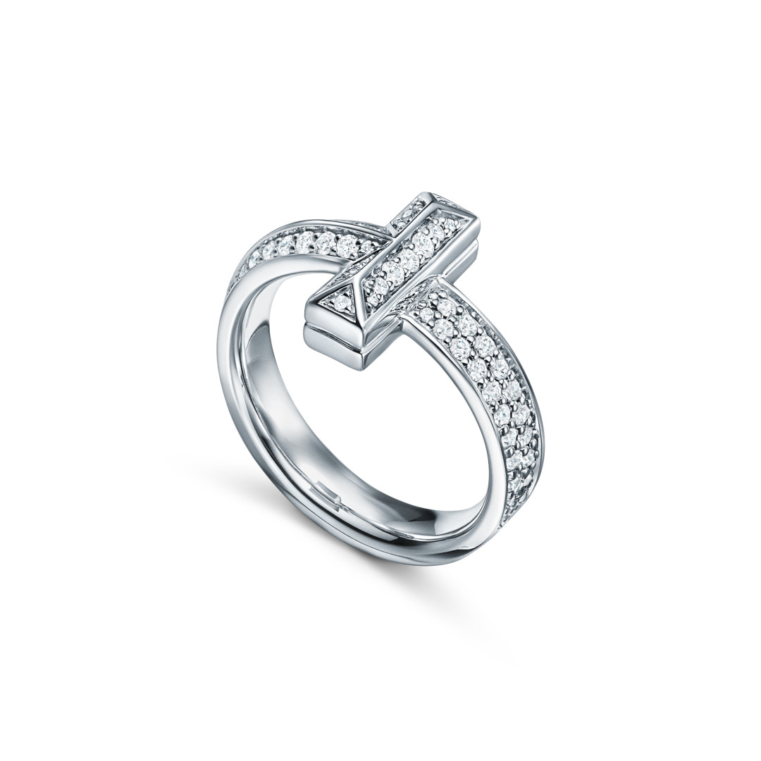 Восьмидесятнический мотив «T» креативный директор Tiffany Рид Кракофф сгладил и округлил в кольца и браслеты с белыми бриллиантами «на каждый день».
