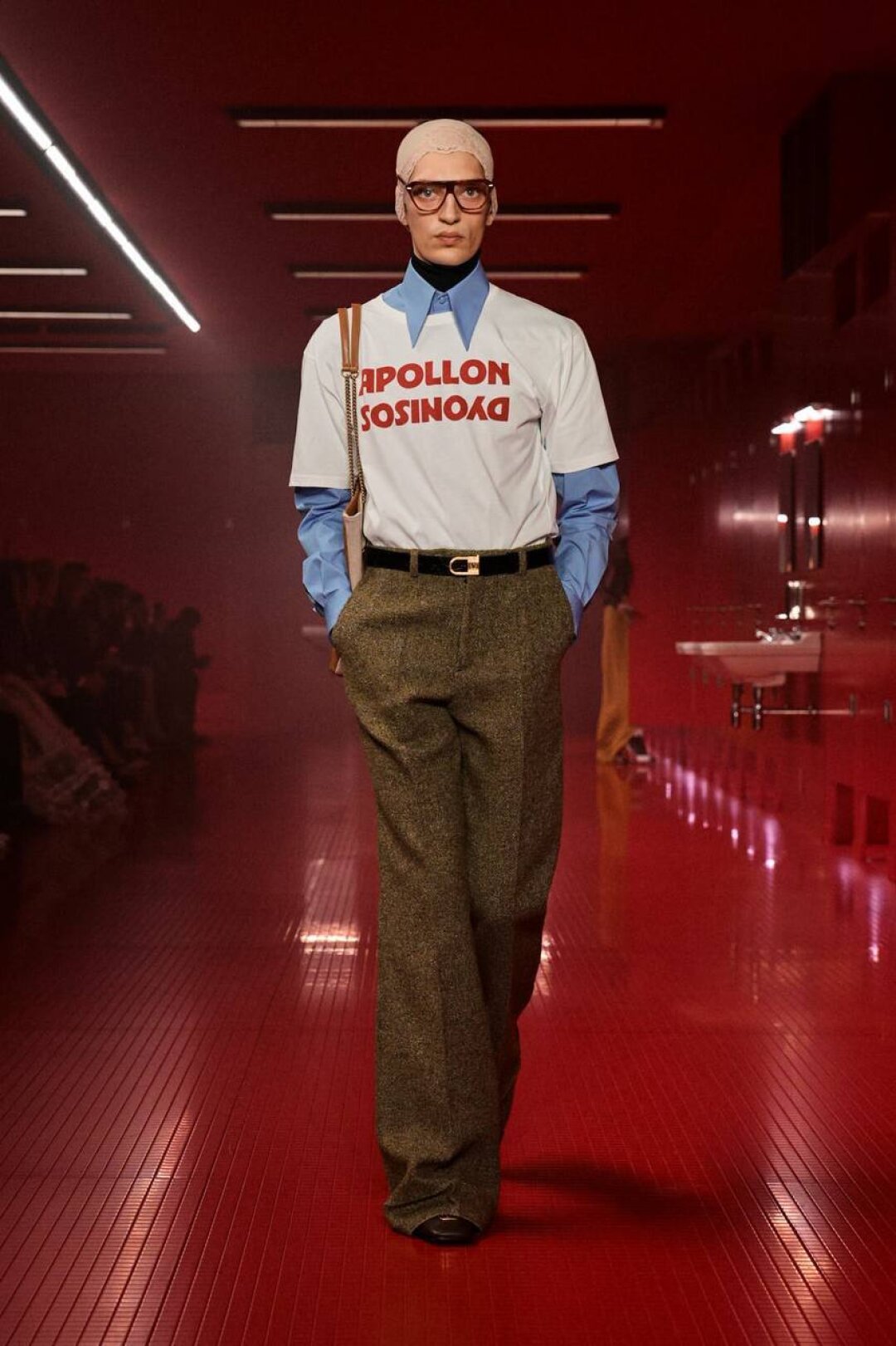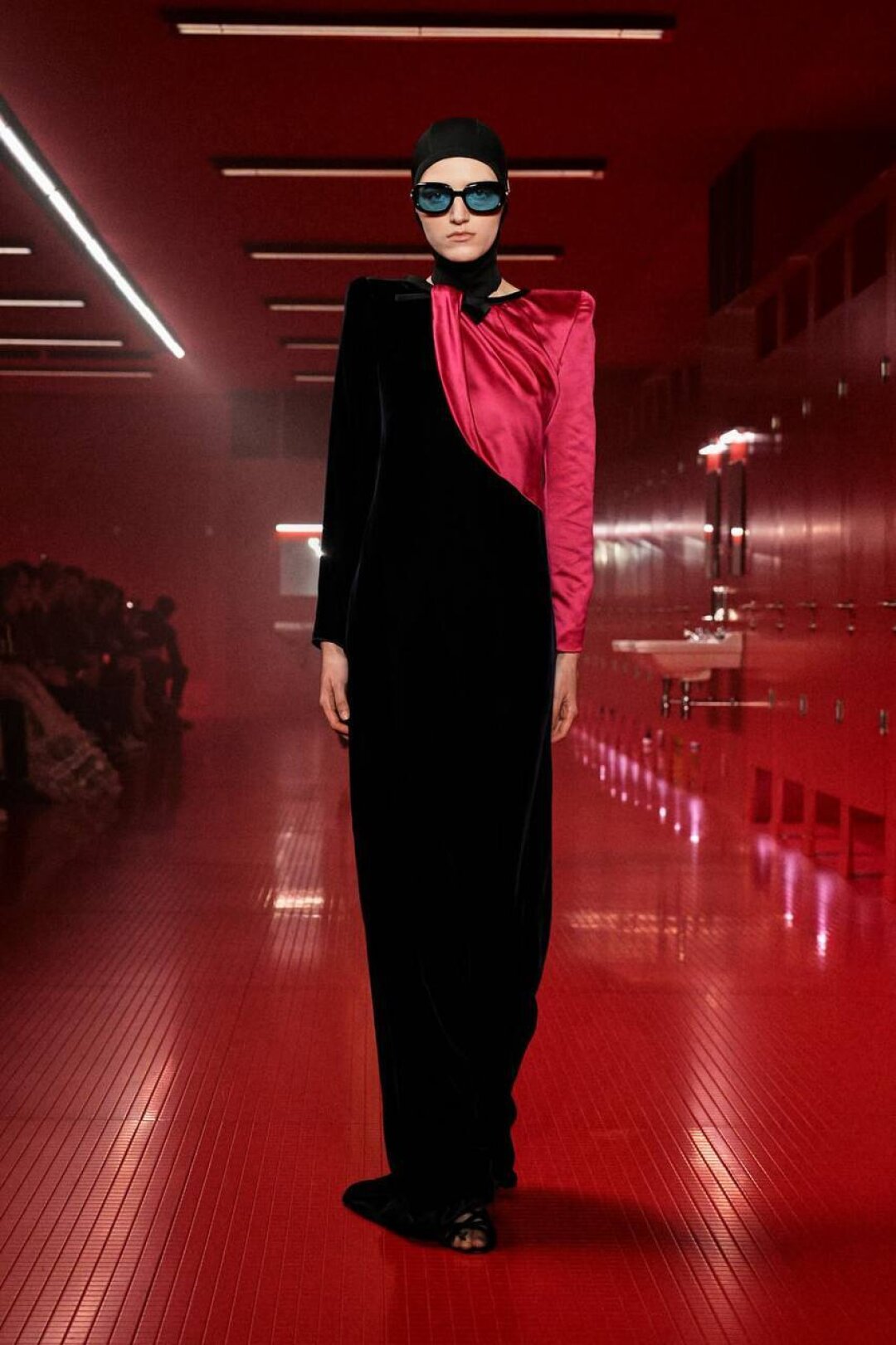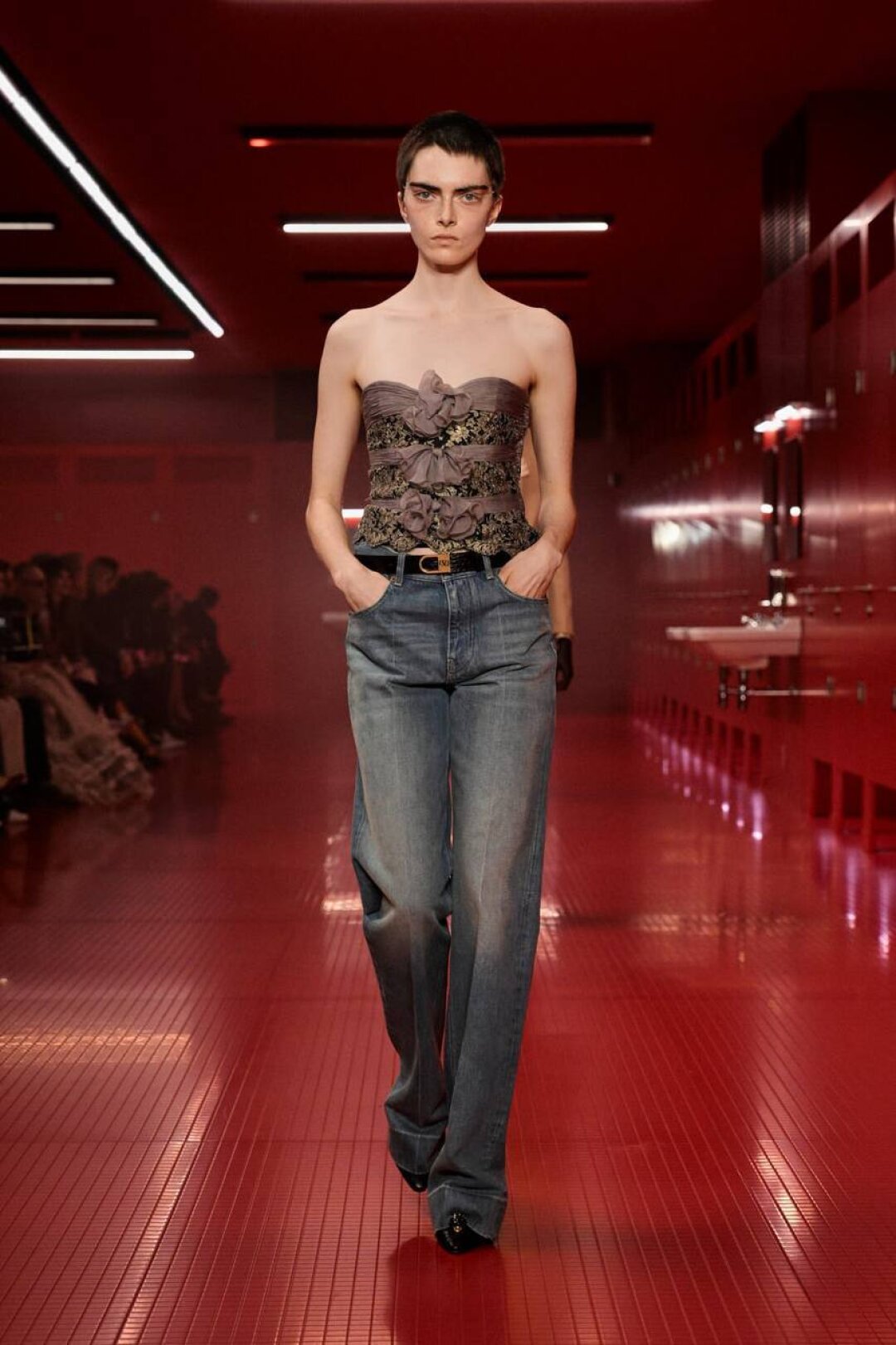 В новой коллекции Le Méta-Théâtre des Intimités («Мета-театр интимности») Алессандро Микеле размышляет о личном и публичном. В качестве декораций креативный директор выбрал раздевалку общественного бассейна, по-линчевски окрашенную в алый, которая, с одной стороны, символизирует вынужденное обнажение, а, с другой, по мнению Микеле, является точно такой же сценой для продуманного представления.